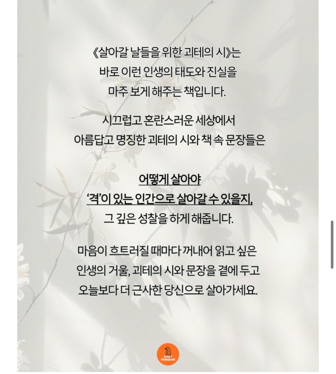 #퍼스트펭귄 #살아갈날들을위한괴테의시