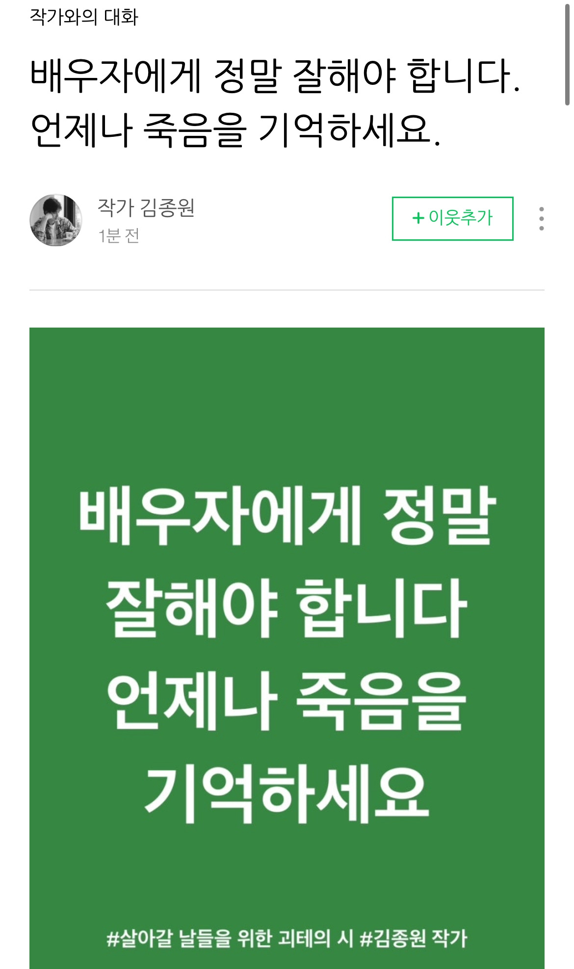 오늘의 인문학 김종원 작가님 글 낭송 안내입니다