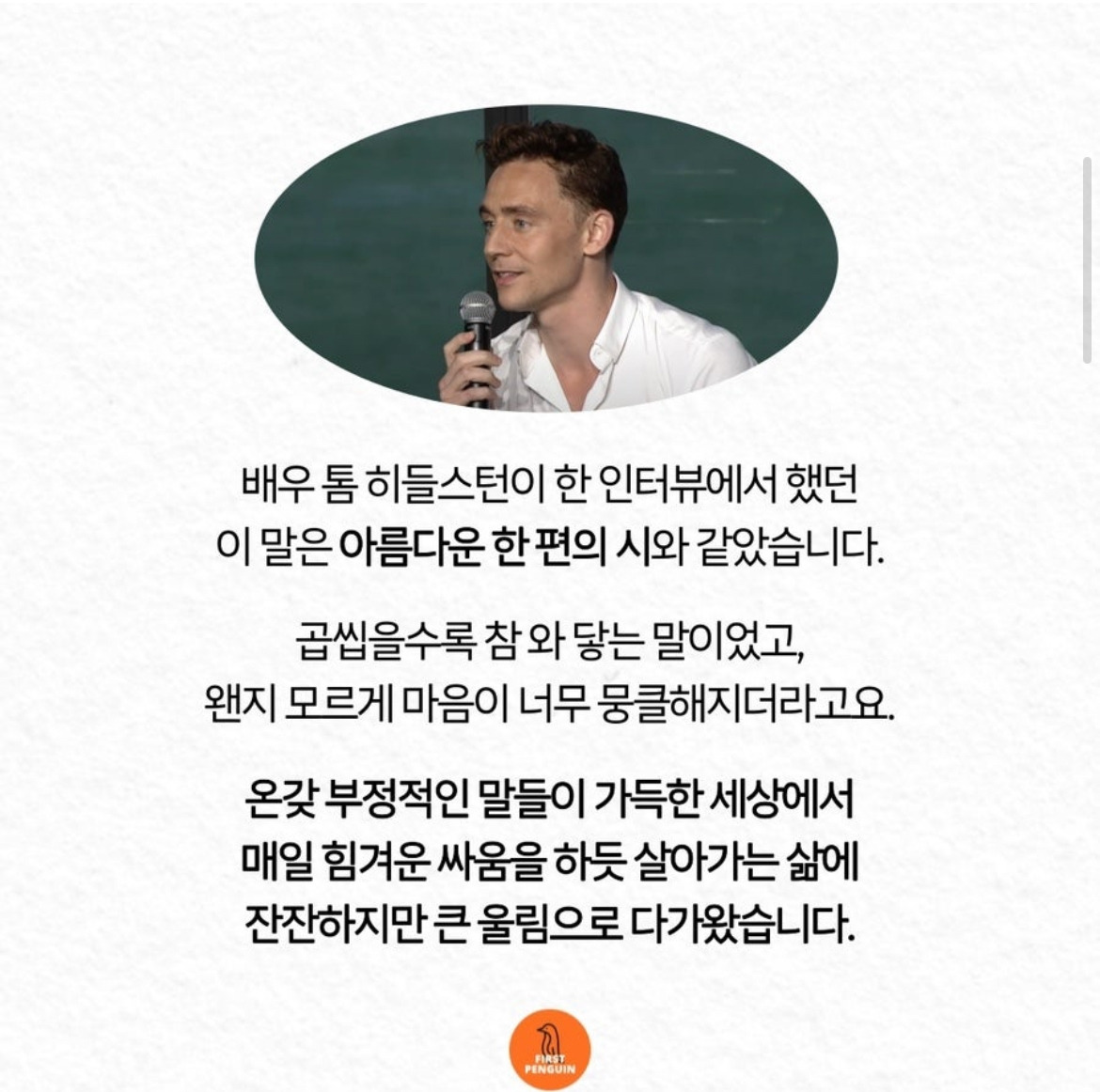 너무 아름답고 감동적인 톰 히들스턴의 이 말