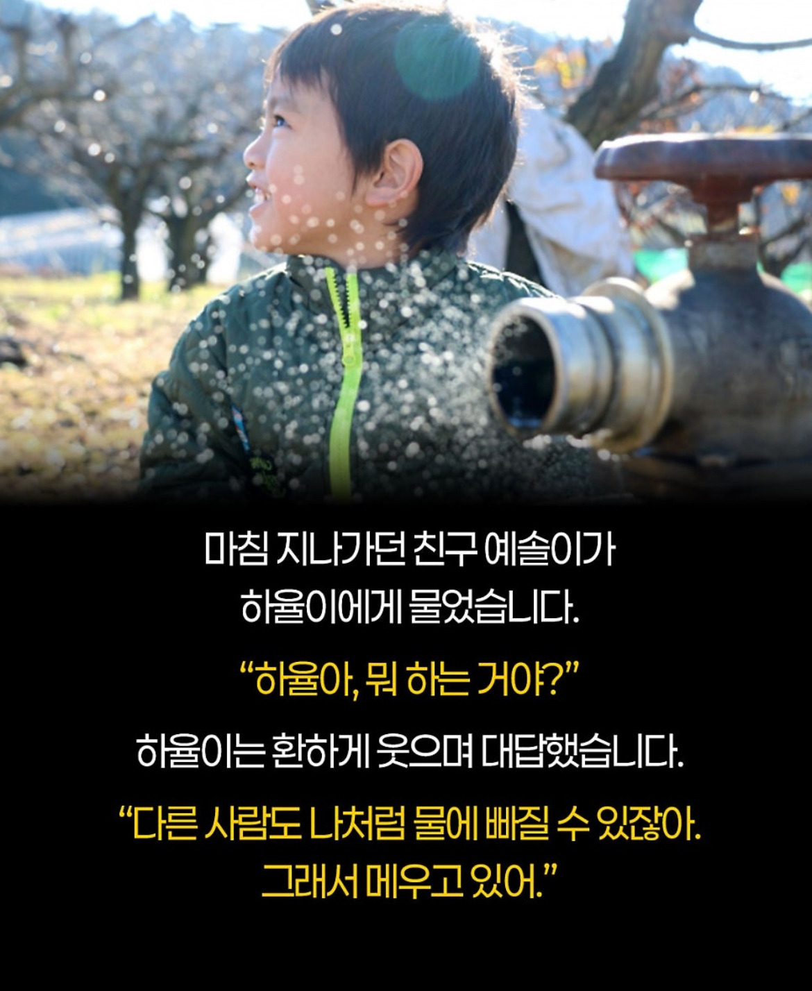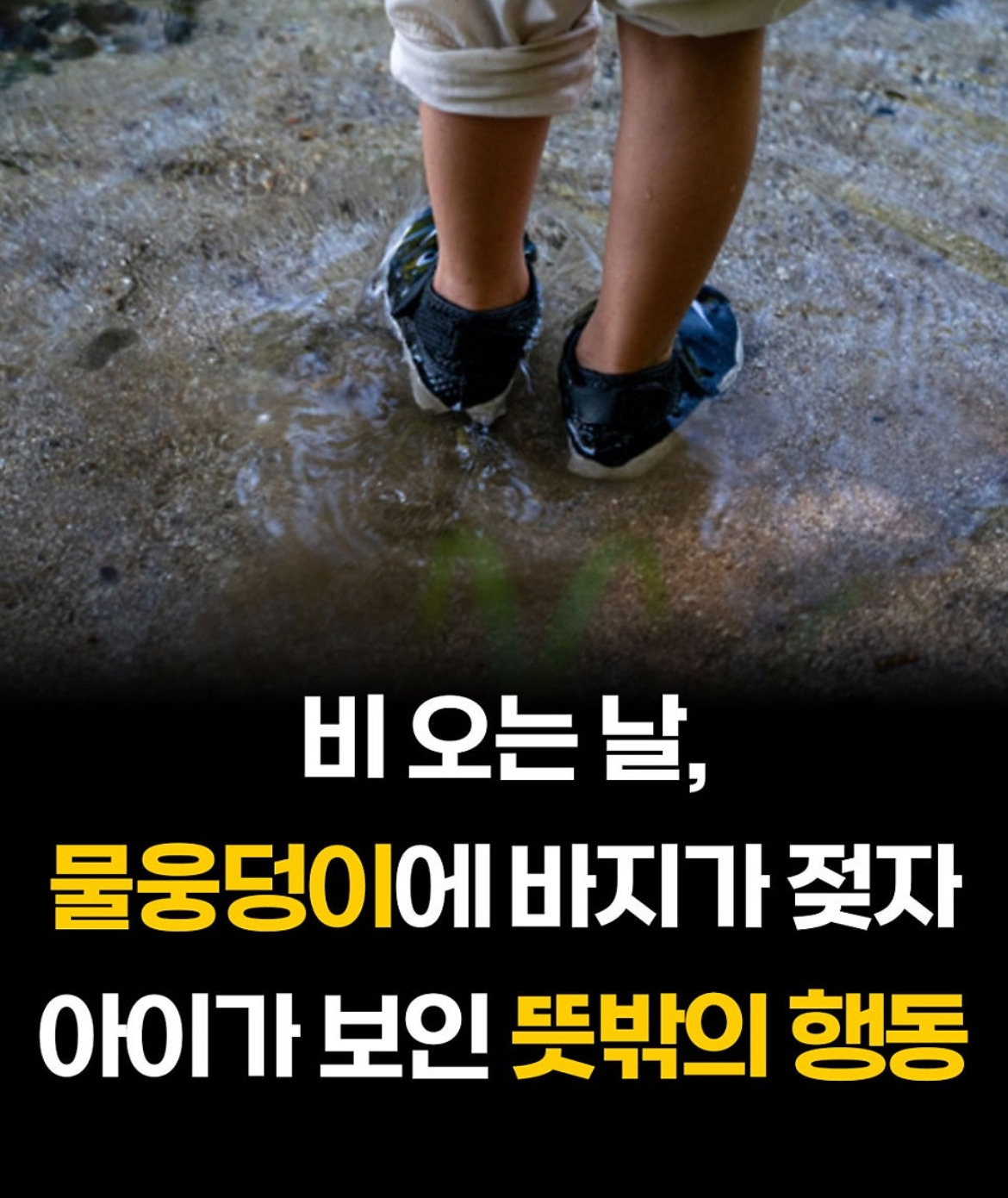 비오는 날 물웅덩이에 바지가 젖자 아이가 보인 뜻밖의 행동