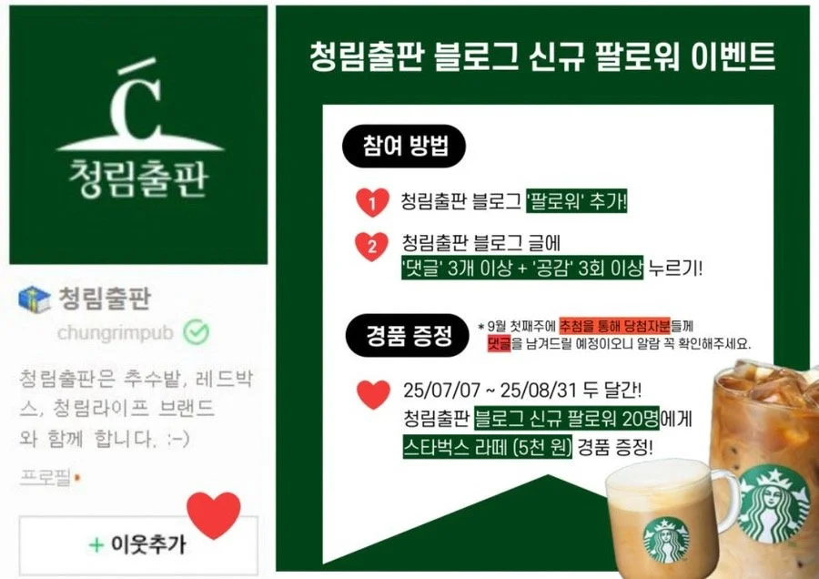 청림출판 블로그 팔로워 스타벅스 기프티콘 증정 이벤트