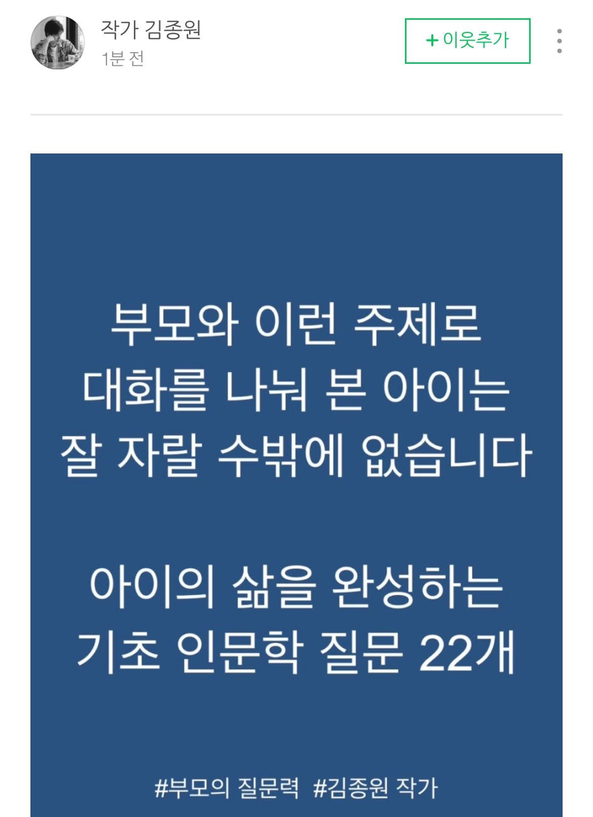 오늘의 김종원 작가님 글 낭송 안내입니다