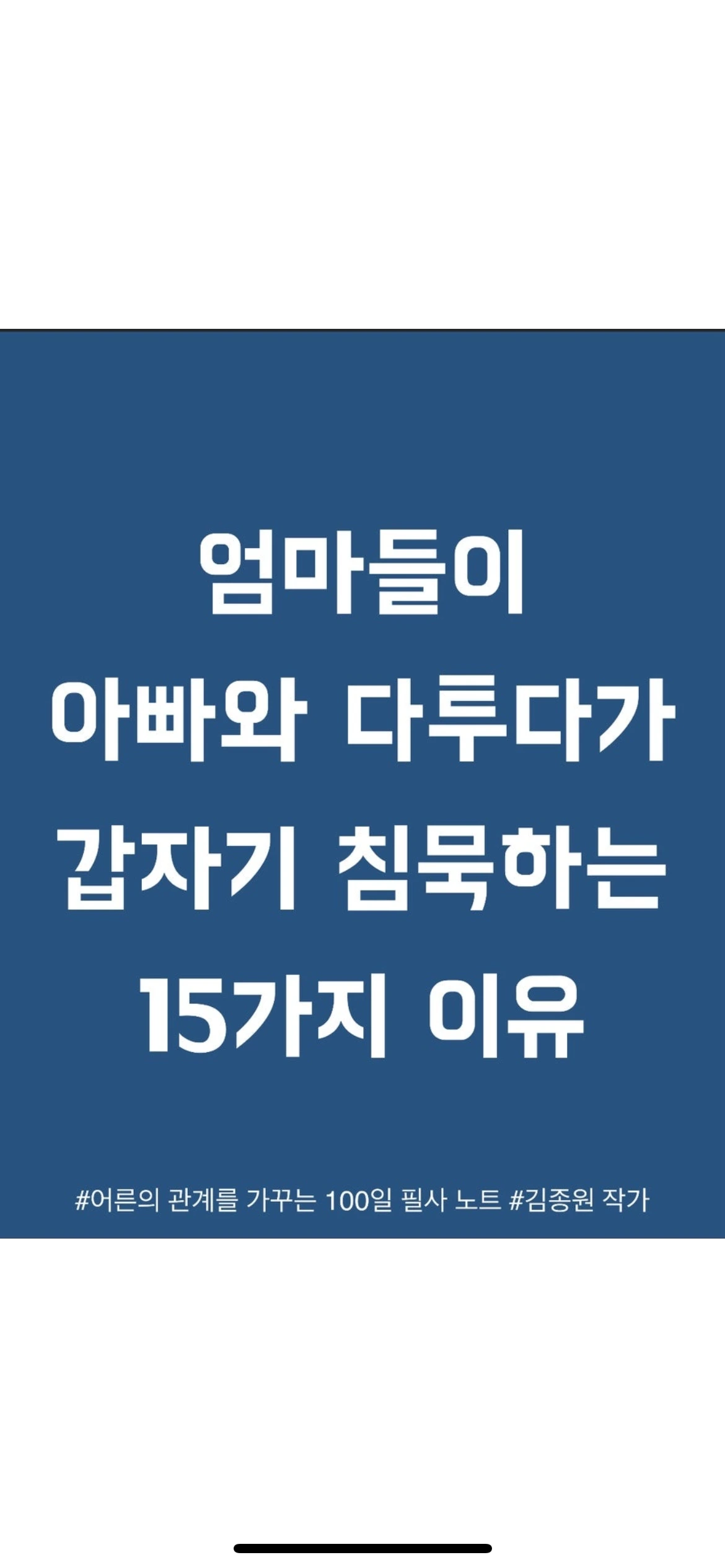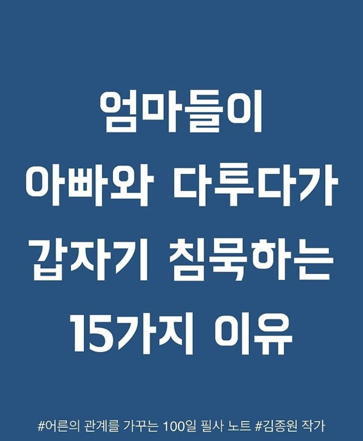 1. 엄마들이 아빠와 다투다가 갑자기 침묵하는 15가지 이유
