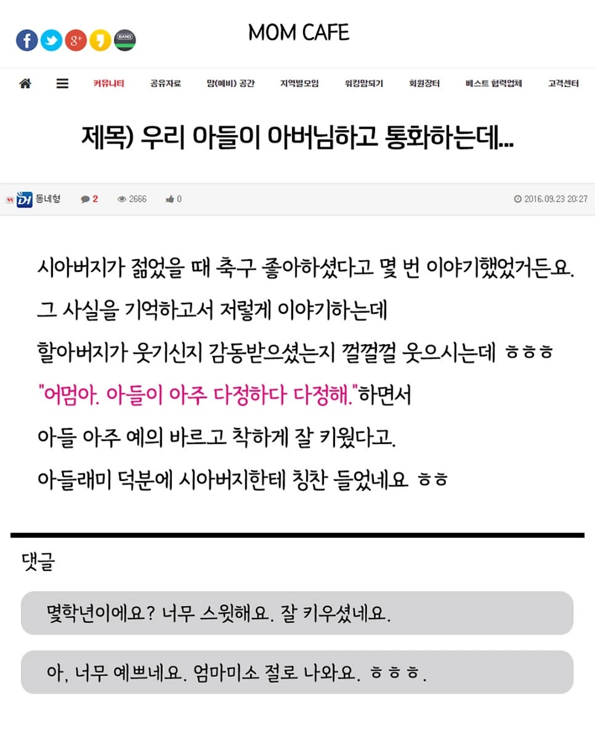 1. 맘카페에서 난리난 초3 아들의 한마디