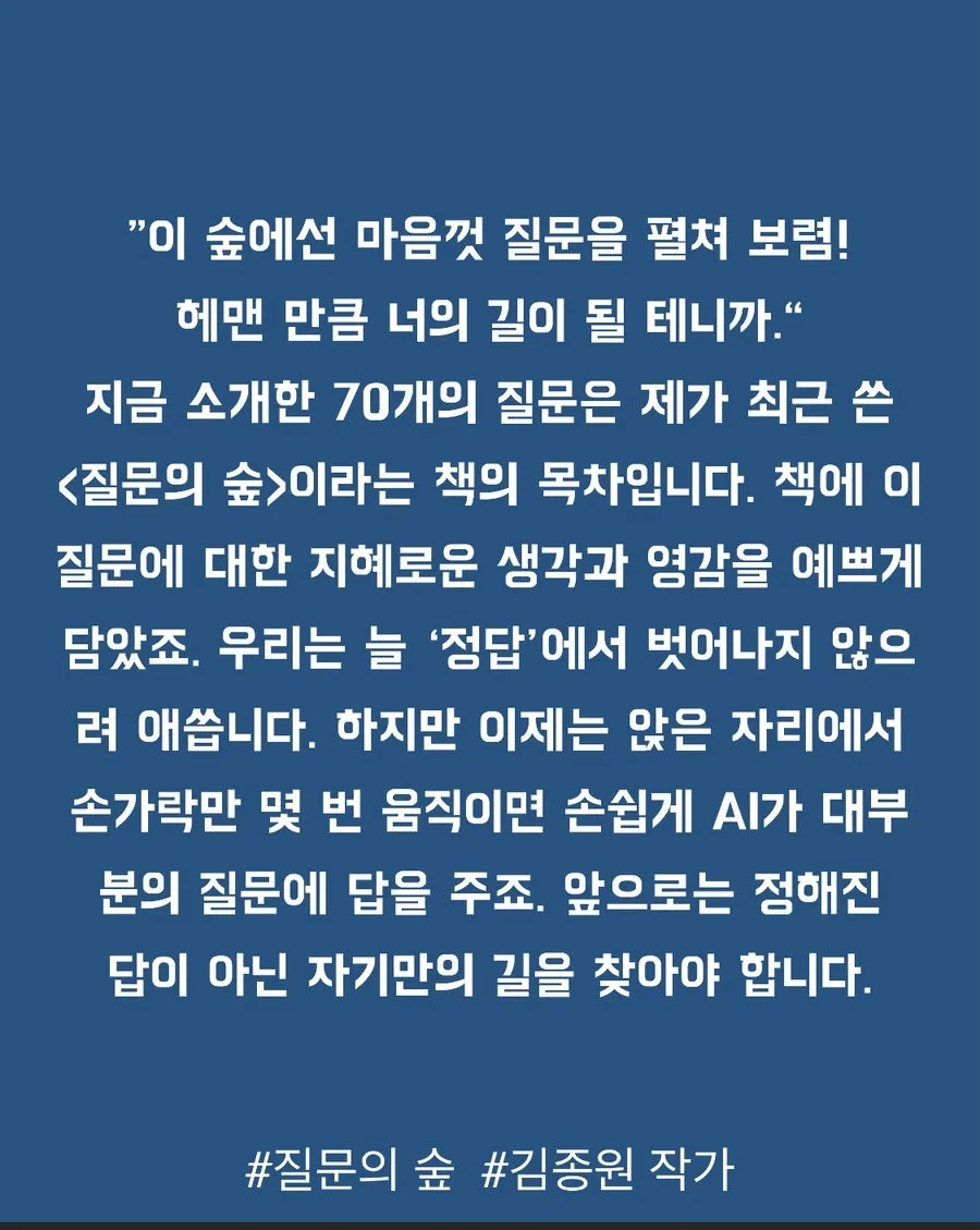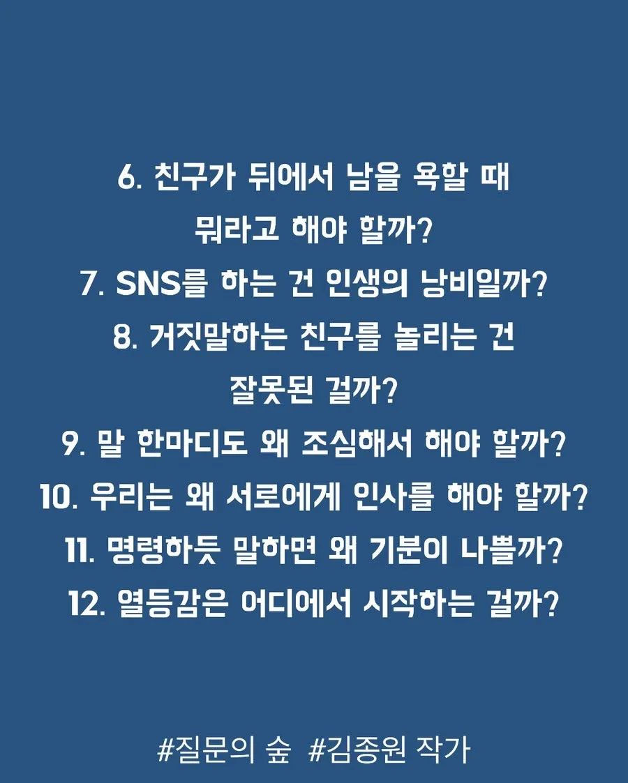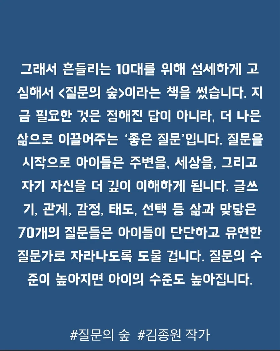 2. 10대 아이들을 더 크게 성장시키는 70가지 인문학 질문 (질문의 숲)