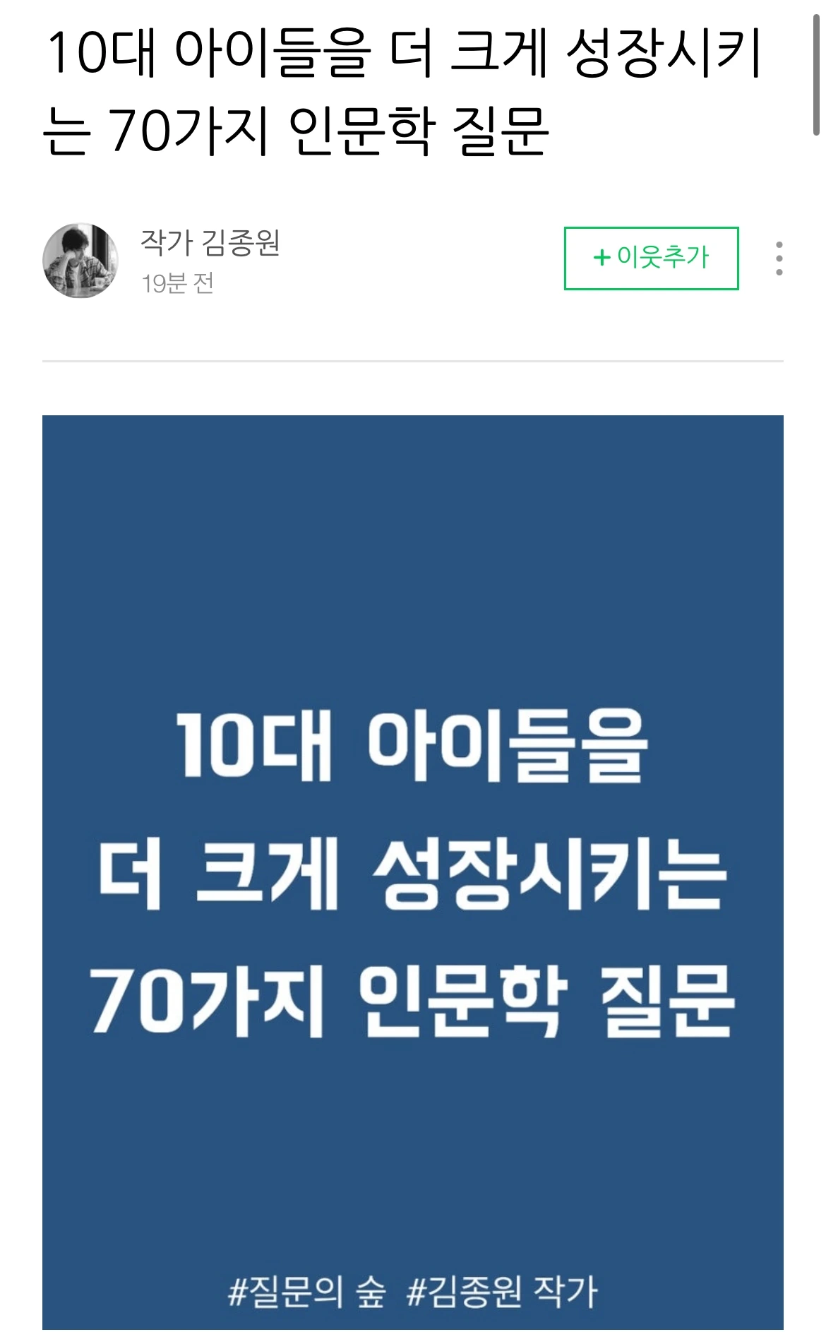 오늘의 인문학 김종원 작가님 글 낭송 안내입니다