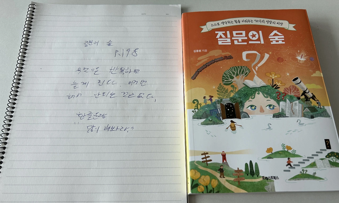 1. 질문의 숲 198p 를 읽고 고2 필사