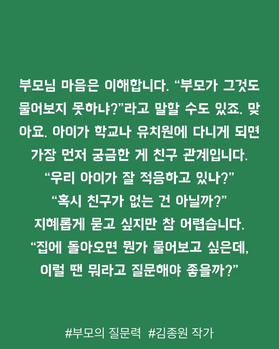 1. “친구는 많이 사귀었니?”라는 질문이 아이에게 위험한 이유 (부모의 질문력)