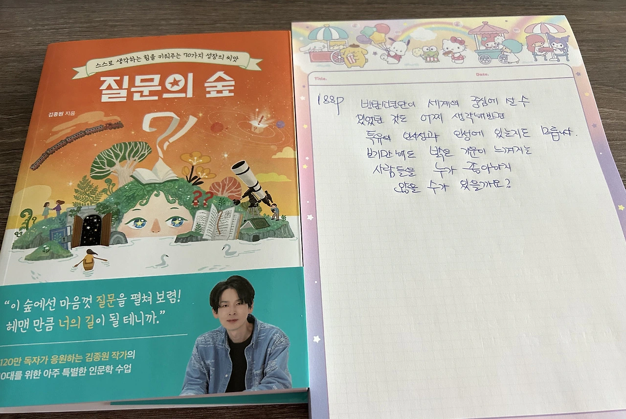 1. 질문의 숲 198p 를 읽고 고2 필사