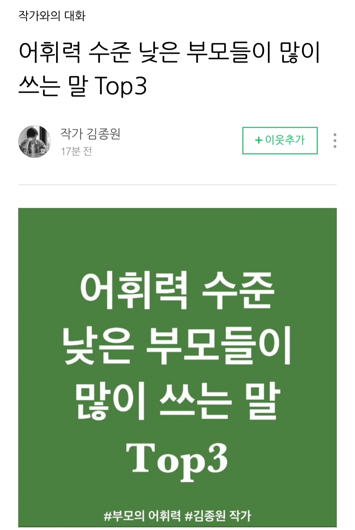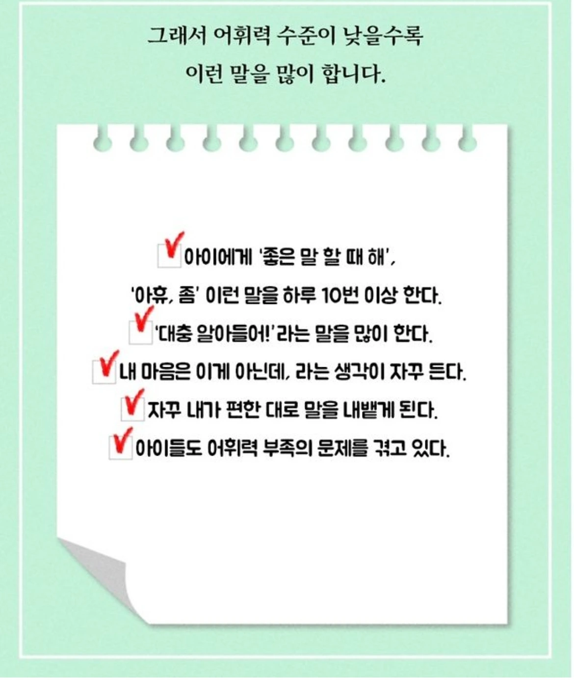 어휘력 수준이 낮은 부모들이 많이 쓰는 말 Top3