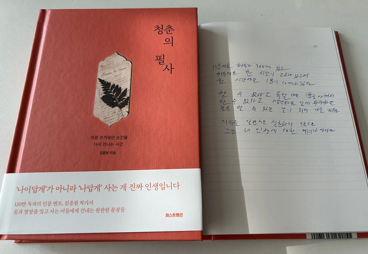 총 4p 분량의 글이 되기까지 얼마나 울고 웃으며 수많은 날을 불태웠던가 쓸만한 가치가 있는 단어와 문장을 최대한 많이 만나고 싶을 때 내면과 정서를 살피어 행복의 길로 인도하는 게 바로 필사와 낭송 독서가 품고 있는 지성의 본질이며 쳘학의 꽃이었다.
