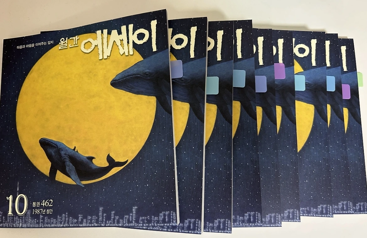 그래 월간 에세이 내 글 공간에 알기 쉽게 표식을 하고 내 글 페이지에 나만의 이니셜을 새겨 넣어본다. 한 권 한 권 나답게 이루어가는 이런 멋진 교양의 물결과 품격이 가능한 건 오늘도 그 길을 걷는 지성의 거대한 바다와 위대한 하늘에 내리는 대지가 있어 특별한 나이듦 속에 숙연해지는 나와의 건강란 일상이다.