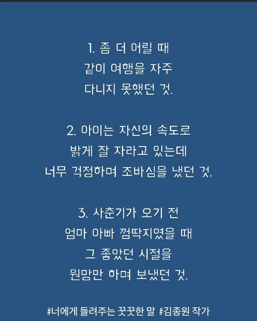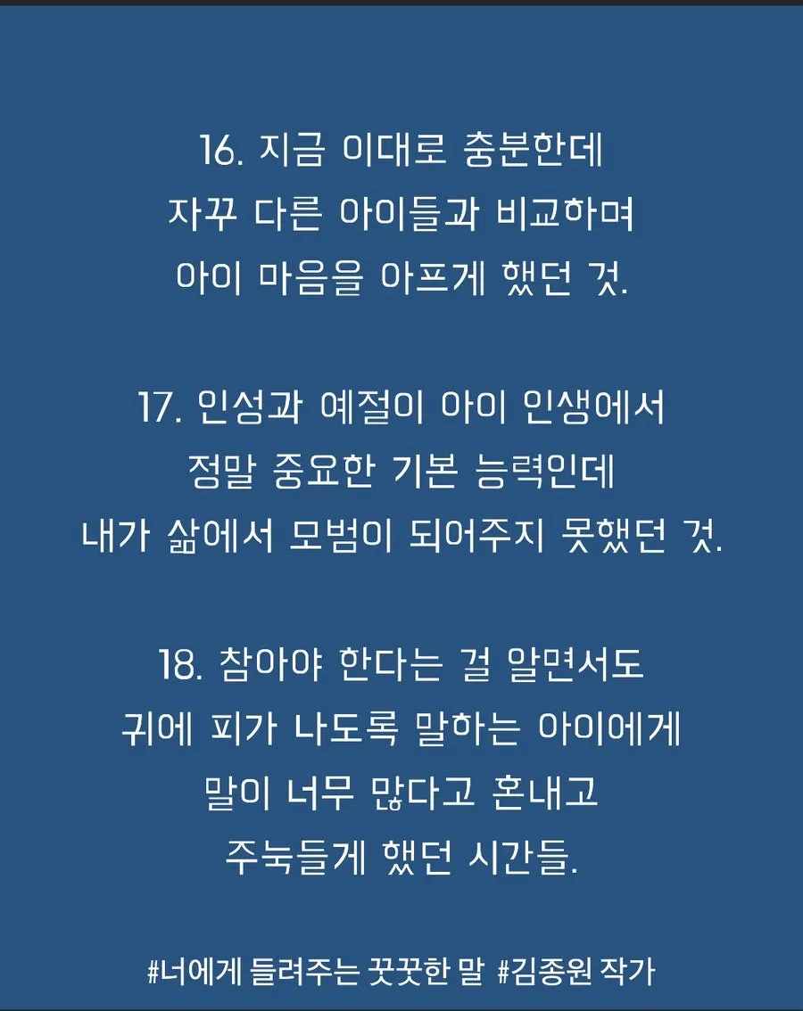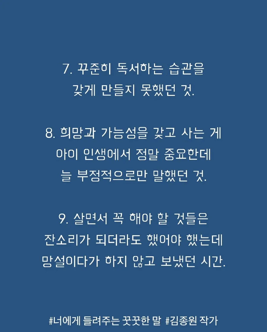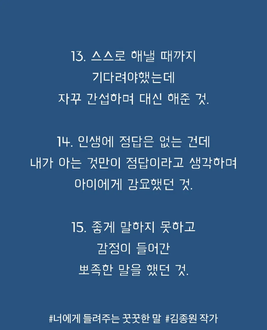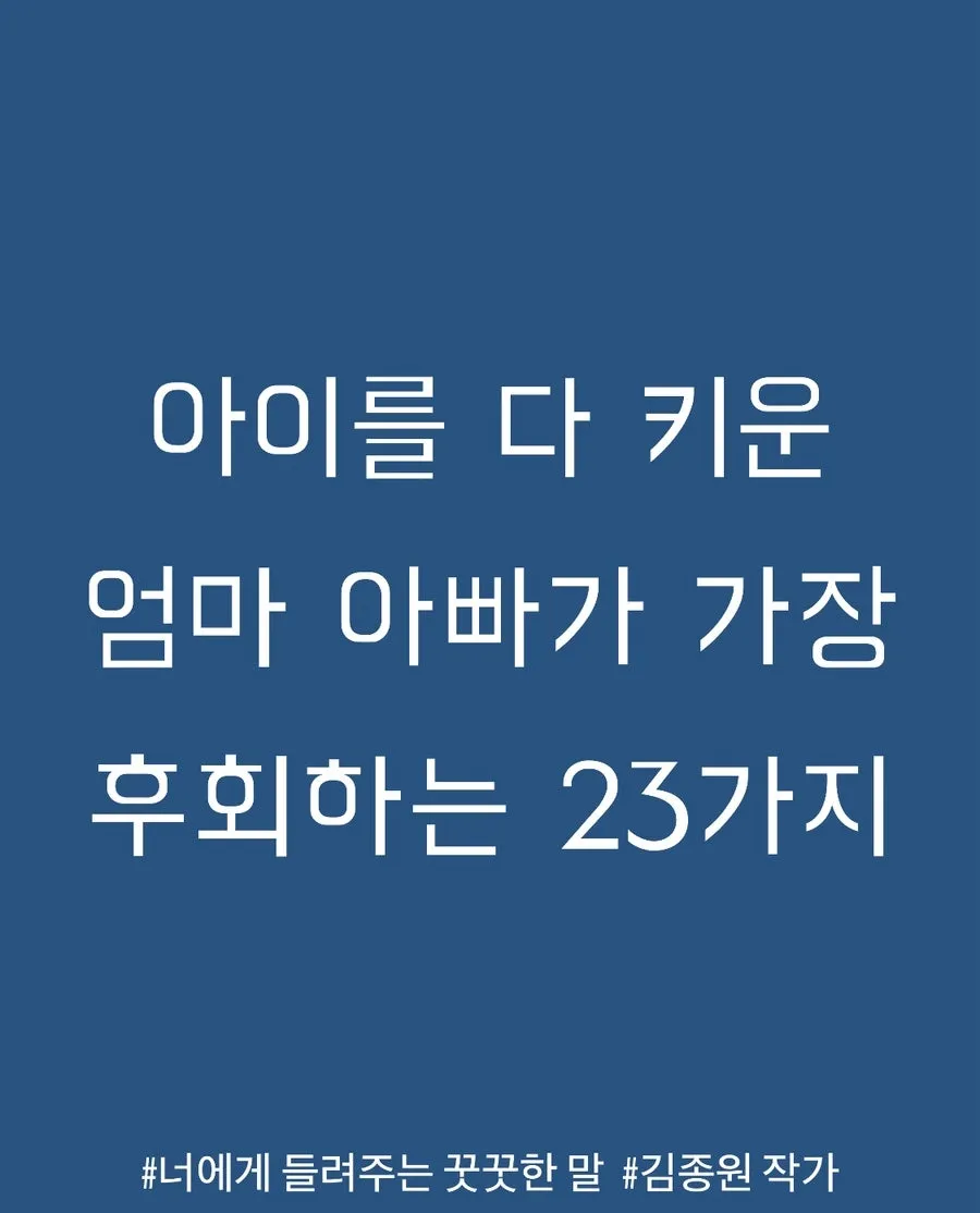 2. 아이를 다 키운 엄마 아빠가 가장 후회하는 23가지 (너에게 들려주는 꿋꿋한 말)