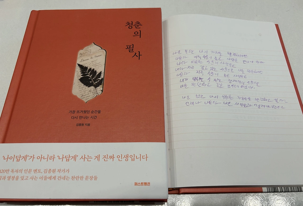 3. 김종원 작가입니다. 오늘은 특별히 혹시, 시간이 되시면 하나만 부탁드리겠습니다.