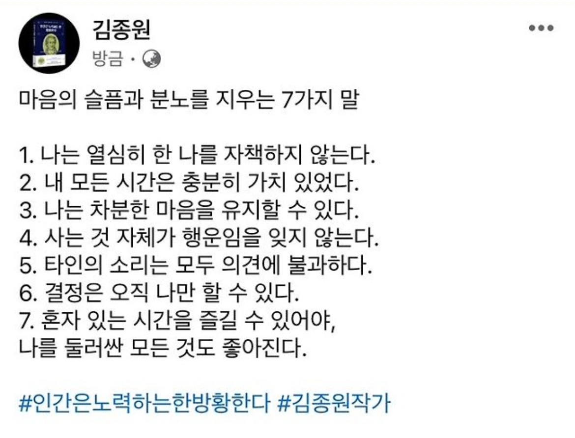 마음이 자꾸 예민해질 때, 위에 소개한 글을 읽으며 소중한 마음을 따뜻하게 해주세요. #김종원 #김종원작...