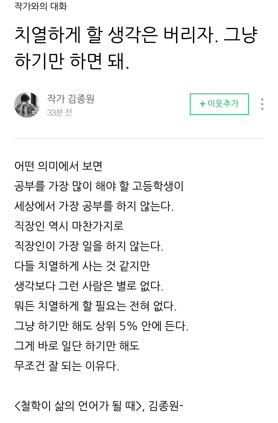 2. 치열하게 할 생각은 버리자. 그냥 하기만 하면 돼(철학이 삶의 언어가 될 때)