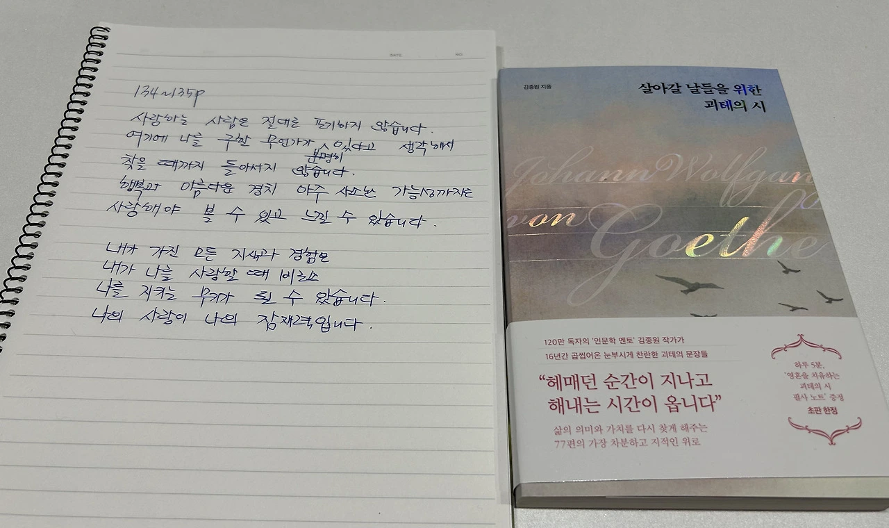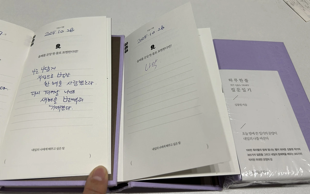 일교차가 큰 하루 낮동안에는 햇볕이 화사하게 내리 비추어 오니 태양의 온도에 몸과 마음을 녹이고 오전에는 겨울이라 몸과 마음을 보호하는 하루의 나날을 시작힌다.생각해도 2025 년의 한해가 언제 다 갔나 손으로 샐 사이가 없이 지나갔고 김종원 작가님의 2번째 질문 1년 일기 <하루 한 줄 질문 일기 365 Q&A 다이어리 > 책 필사를 오늘 비로소 둘째가 마치며 내가써가는 글과 일기의 주제가 같아 이 길목에서 교합해본다.