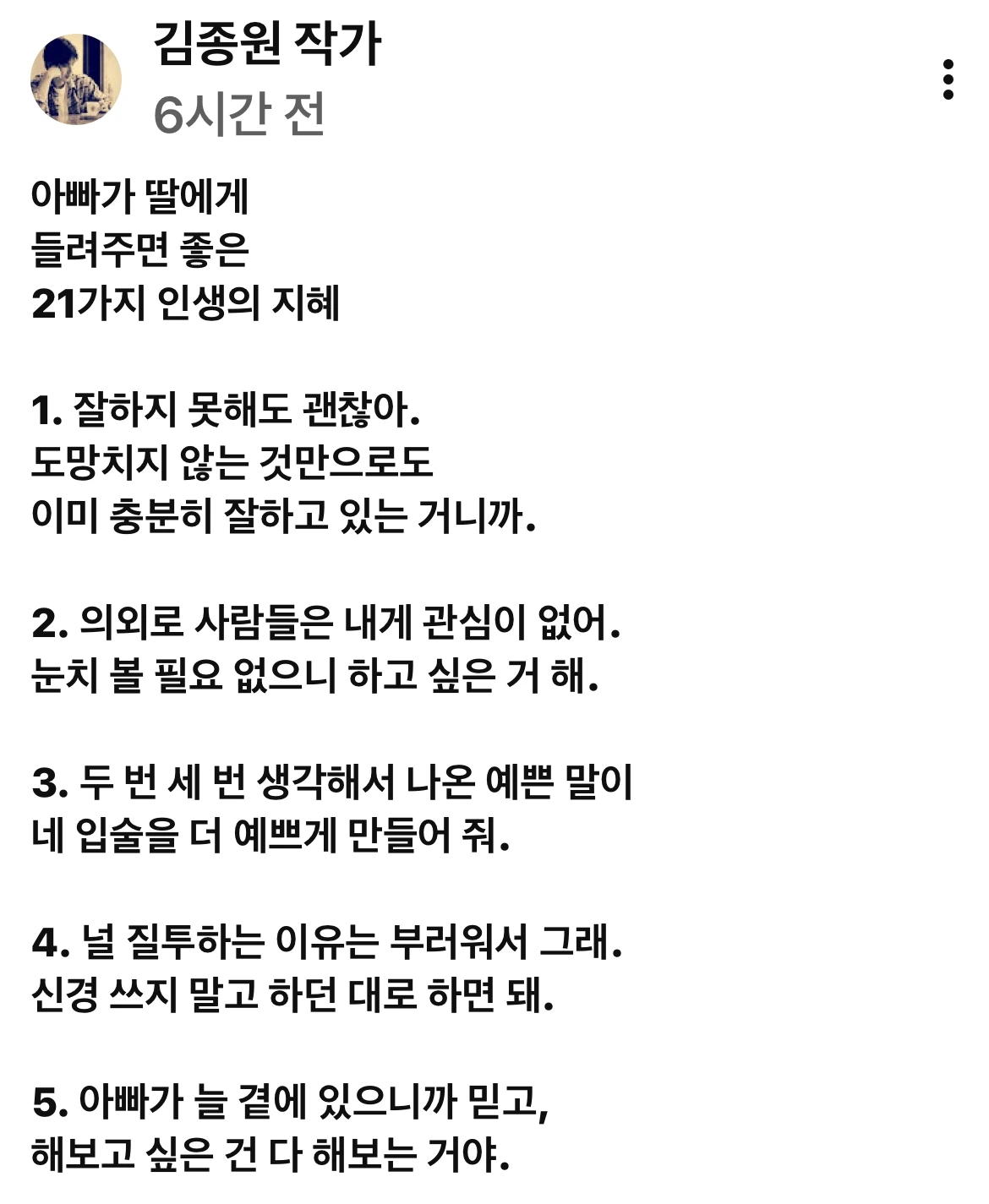 오늘의 인문학 김종원 작가님 글 낭송 안내입니다