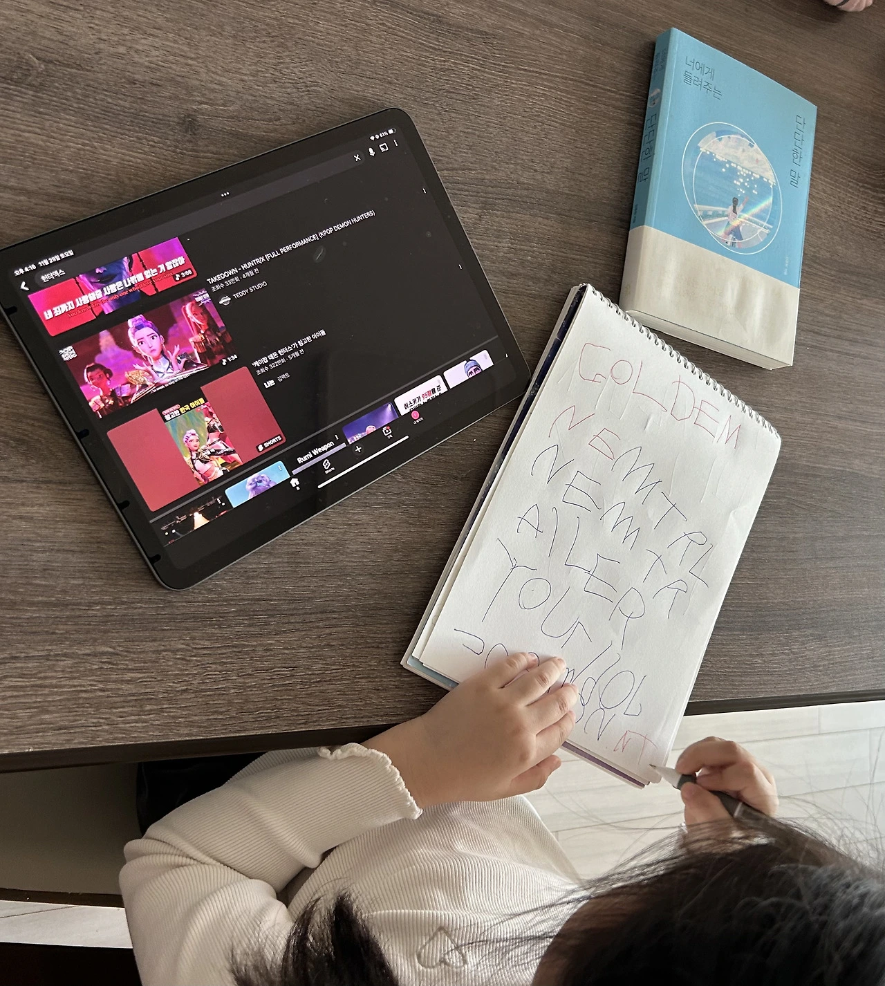 6살 조카 손녀가 아이패드를 연결해 어린이 유아용 유튜브 프르그램 화면에 쓰인 영어 단어와 문장들을 땨라 쓰는데 주변에 신경쓰지 않고 몰입하여 글쓰는 그 모습이 왜이리 예쁜지 가족이 늘 나이차는 어른이고 또래나 친구가 없는 조카손녀가 볼때마다 성장해 있다.