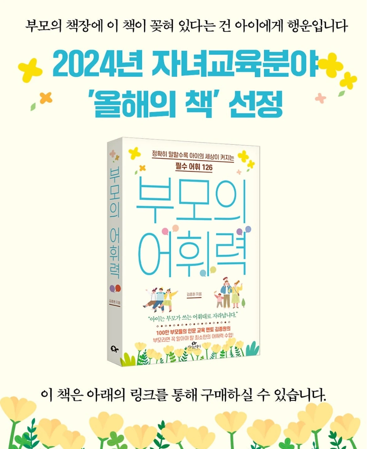 대한민국 100만 학부모가 선택한 인문 교육 전문가 김종원 작가가 고르고 고른, 부모라면 꼭 알아야 할 필수 어휘 126가지를 한 권으로 정리한 어휘 공부 책이다. 부모가 헷갈리기 쉬운 표현, 아이