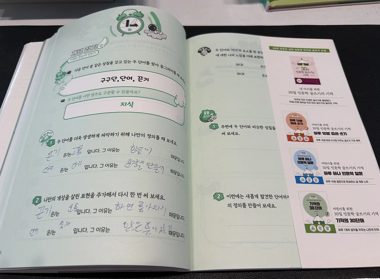 단어는 다리라는 말 그 이유는 문장을 만들기 때문이라는 곧 많은 뜻을 품고 있어 단어가 숫자라는 고2 아들이 쓴 인문학 워크북 3종 세트 중 <기적의 30 단어> 책에서 제시한 질문을 보며 잠시 멈추어 내가 다시 걸으며 쉼을 호흡한다.