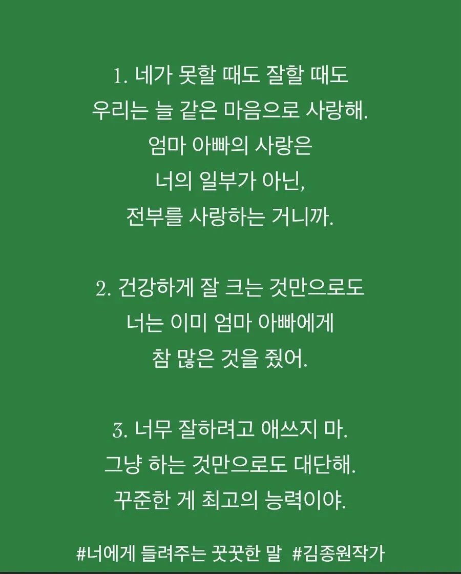 3. 아이들은 엄마 아빠에게 이런 말을 들을 때 사랑받는다고 생각해서 자존감이 더 탄탄해집니다 (너에게 들려주는 꿋꿋한 말)