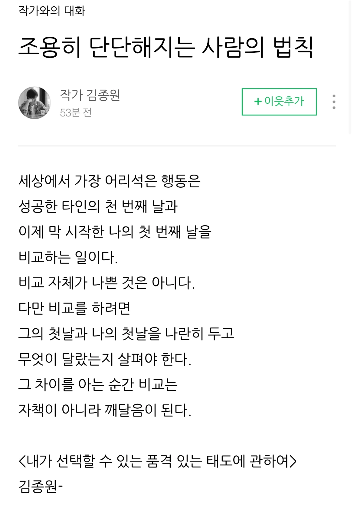 오늘의 인문학 김종원 작가님 글 낭송
