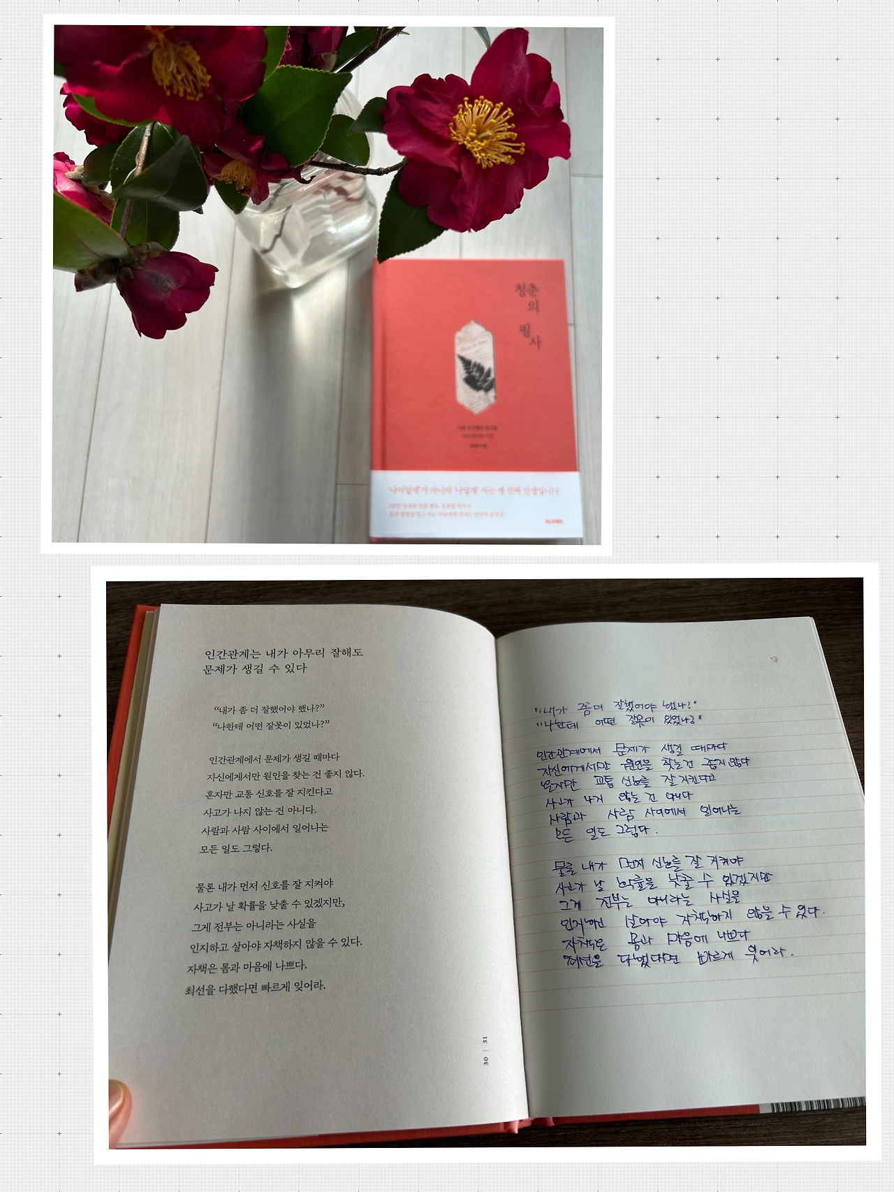 아들의 낭송 일력 글도 필사 책을 펼친 글도 모두가 내삶에서 필요하고 가능한 일들이 글되어 쓰여 있으니 또 다시 힘을 내 나의 삶으로 초대할 수 있다.
