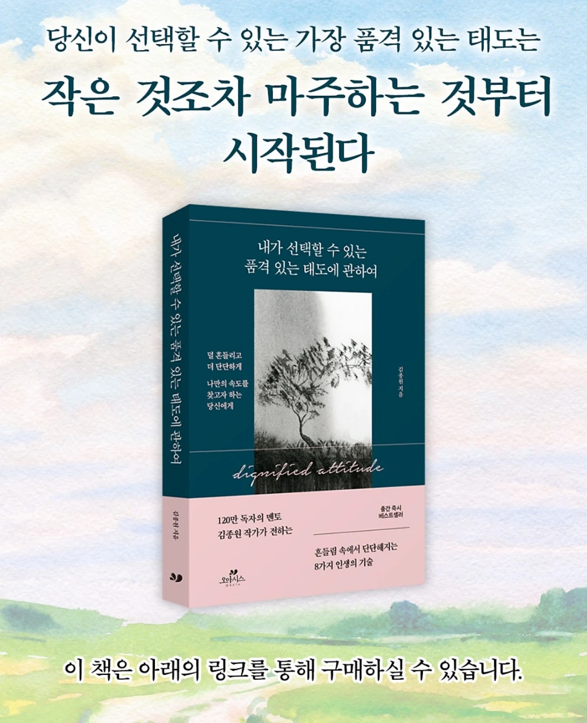 내가 선택한 태도의 깊이만큼 삶의 품격이 달라진다덜 흔들리고 더 단단하게 나만의 속도를 찾고자 하는 당신에게120만 독자의 멘토, 김종원 작가가 전하는흔들림 속에서 단단해지는 8가지 인생