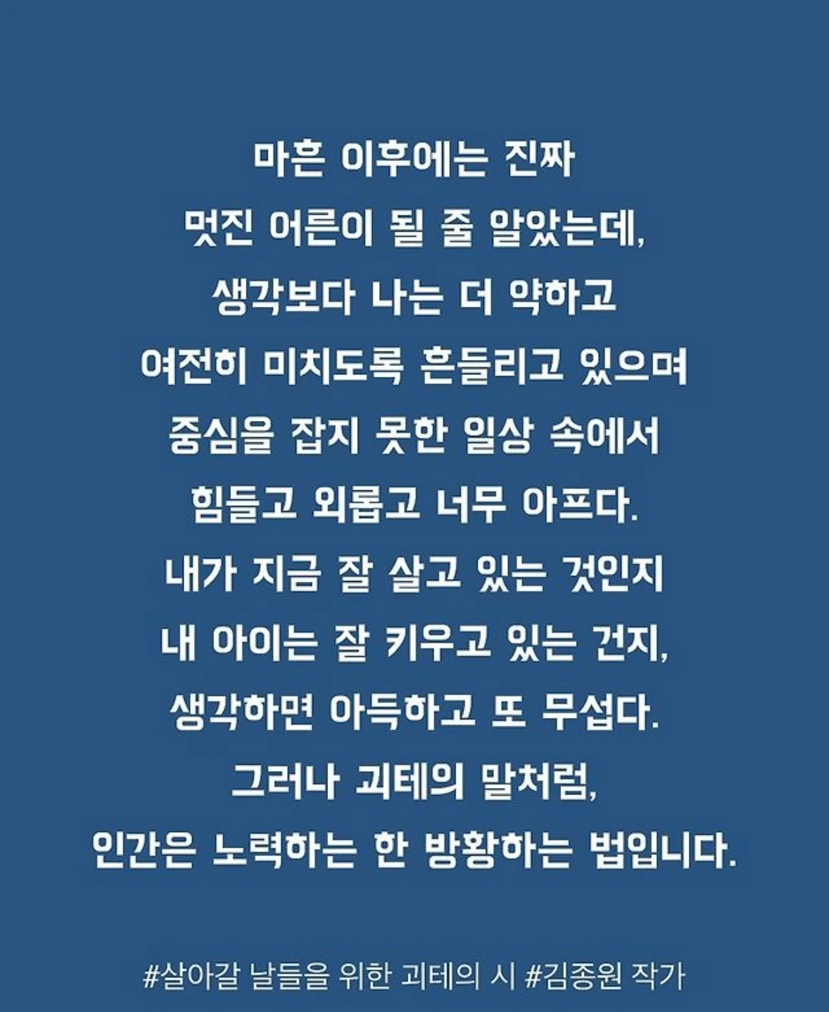 1. 엄마 아빠의 인생이 마흔부터 진짜 힘들어지는 이유 (살아갈 날들을 위한 괴테의 시)