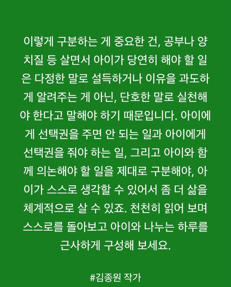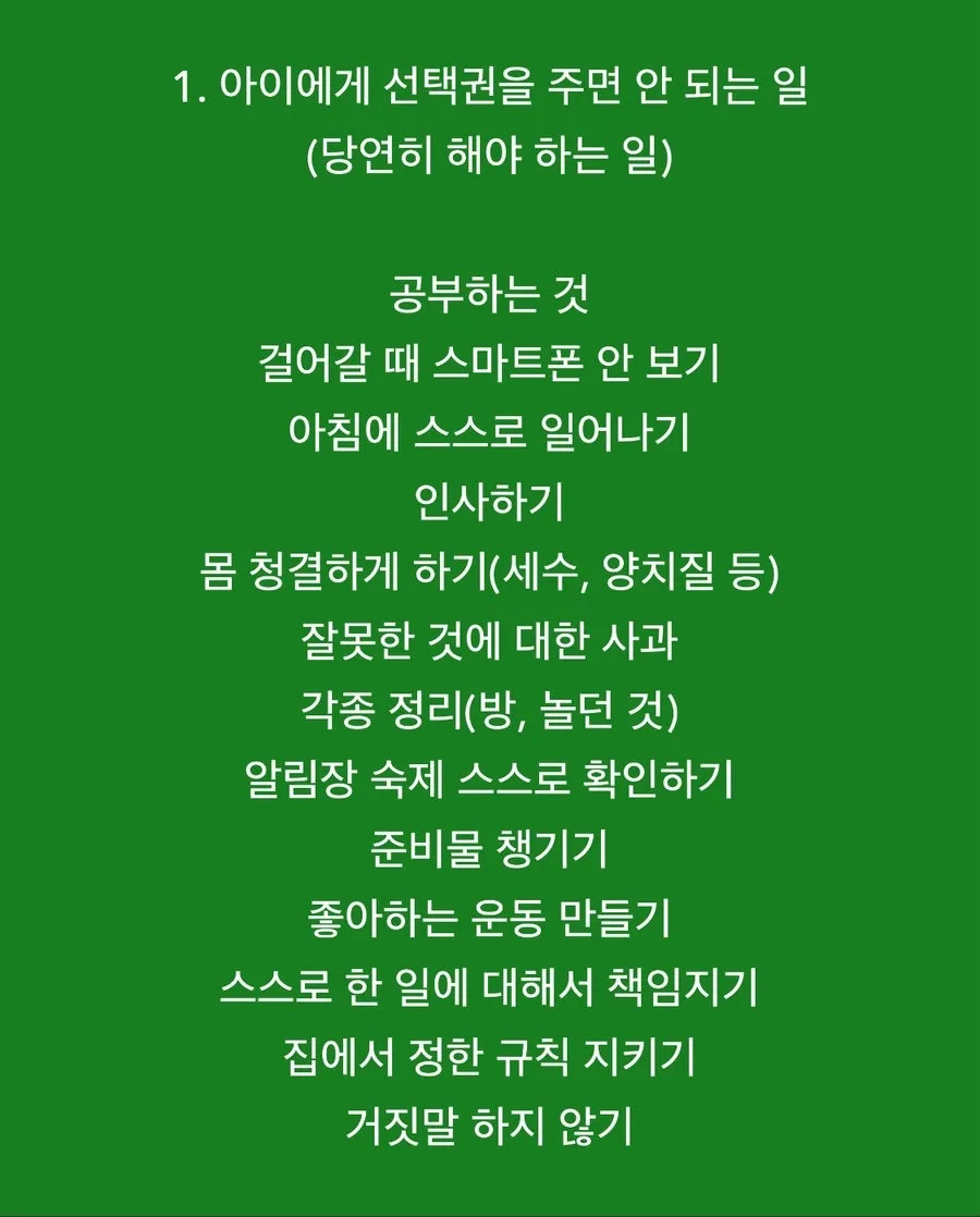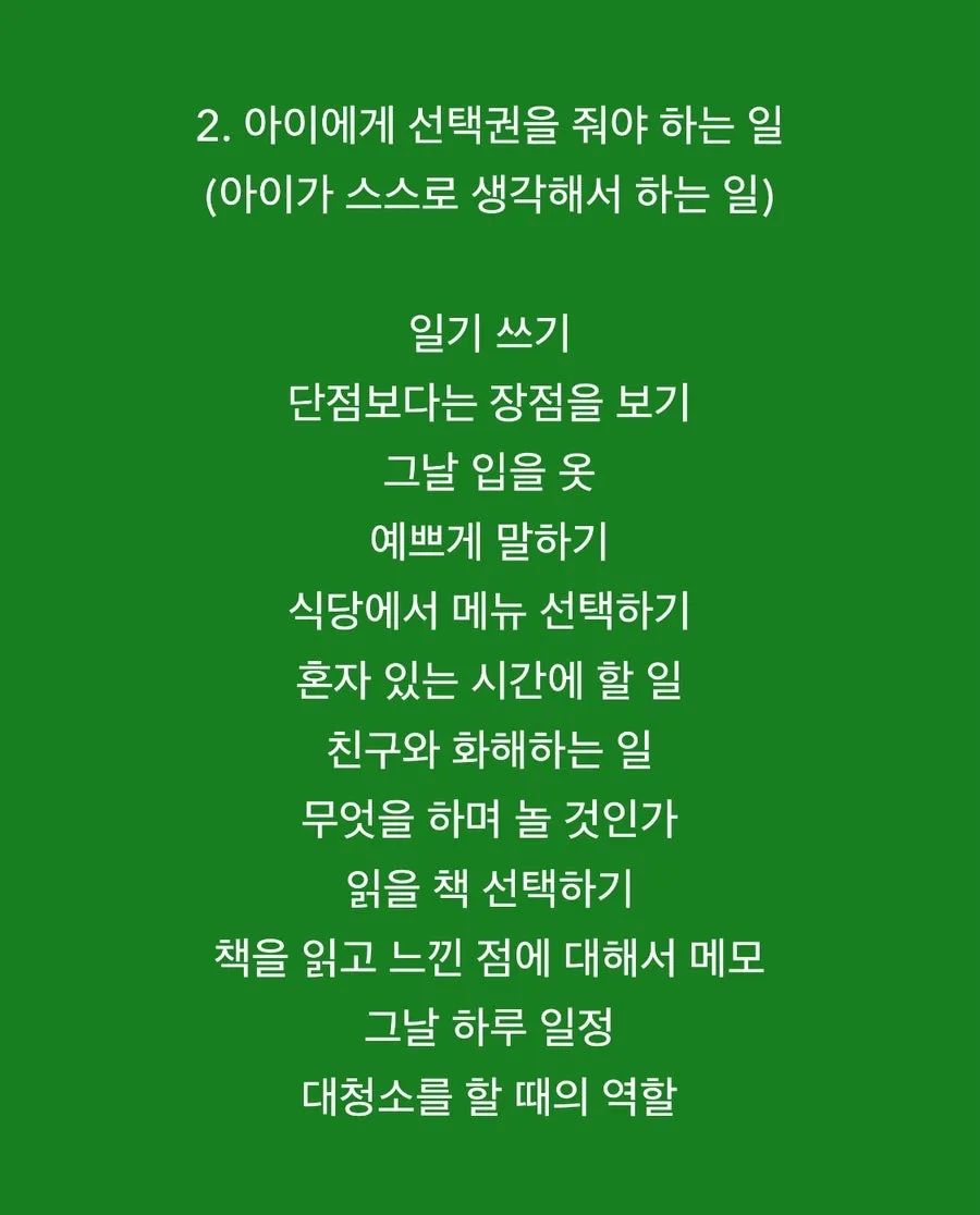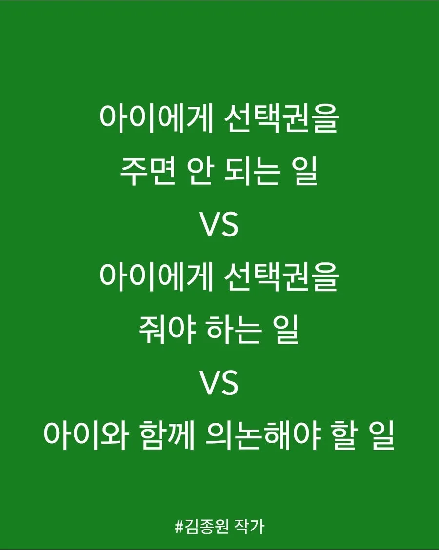 아이에게 선택권을 주면 안 되는 일 VS 아이에게 선택권을 줘야 하는 일 VS 아이와 함께 의논해야 할 일