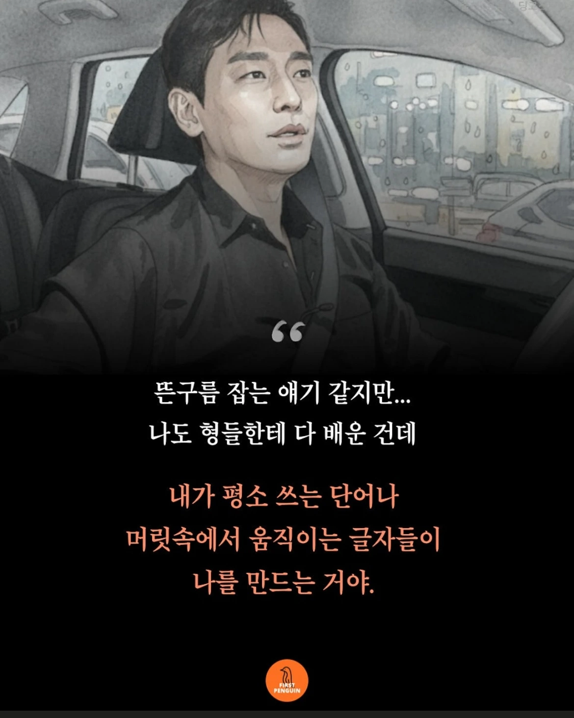 뜬구름 잡는 얘기 같지만... 나도 형들한테 다 배운 건데 내가 평소 쓰는 단어나 머릿속에서 움직이는 글자...