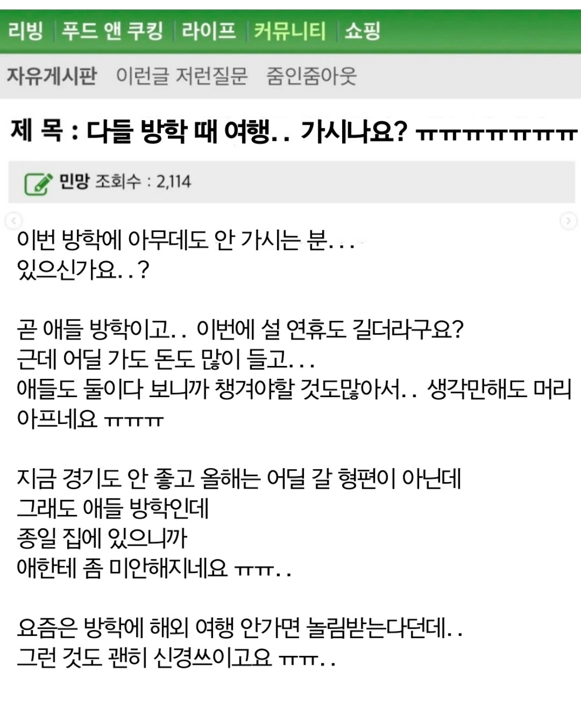 다들 방학 때 이것 하시나요? 맘카페에서 댓글 폭발한 워킹맘의 고민들