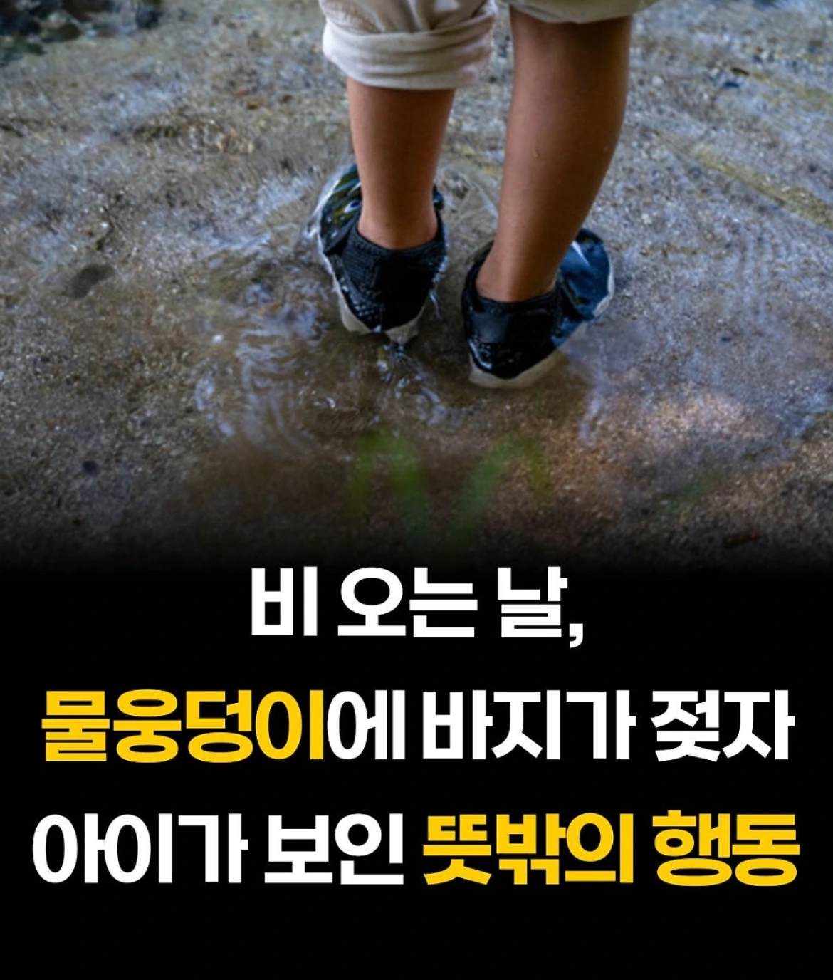 비오는 날 물웅덩이에 바지가 젖자 아이가보인 뜻밖의 행동