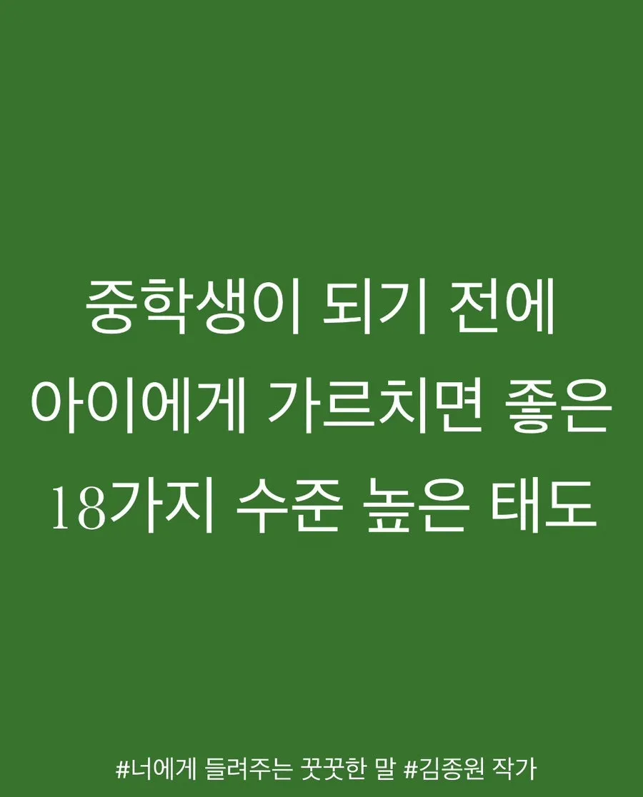 중학생이 되기 전에 아이에게 가르치면 좋은 18가지 수준 높은 태도