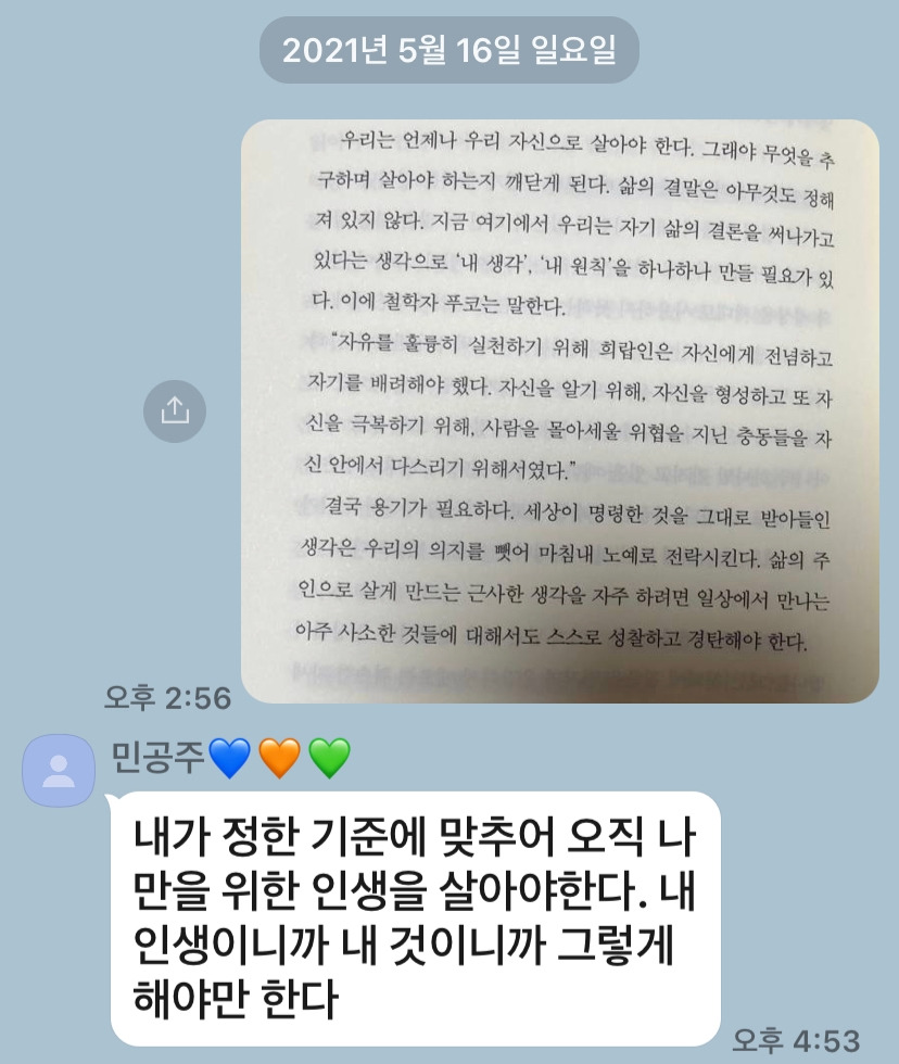 그것을 살게 이끄는 진한 심장을 통해 앞으로 살아갈 변함없는 온도를 간직할 수 있다.”