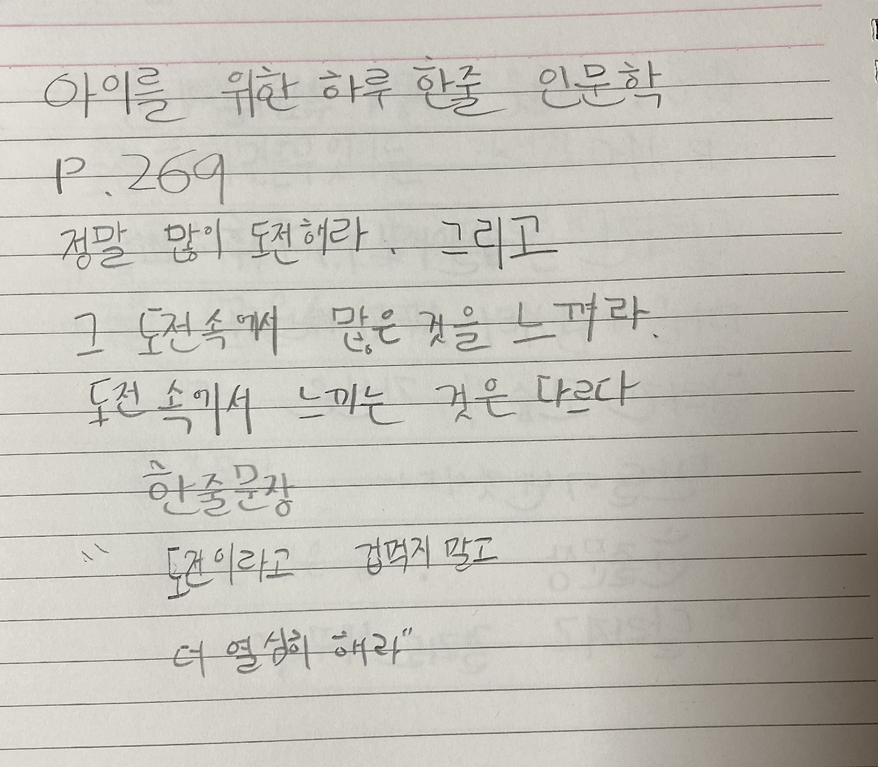 1. 아이를 위한 하루 한 줄 인문학 269P를 읽고