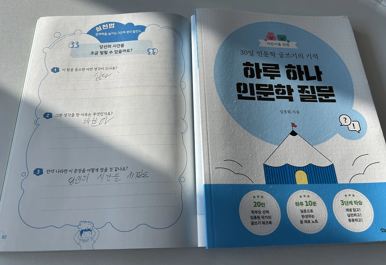 둘째의 인문학 워크북 시리즈 3권으로 2022년 5월에출판된 책으로 몇해째 같은 질문을 반복하다보니 이제조금 다른길을 산책하고 싶어하는 여러번의 요청을 수렴해 이제는 다른 책으로 갈아탈 때가 된 것 같다.그러고보니 참 많이 함께 걸어왔네. 늘 고맙고 감사하다.