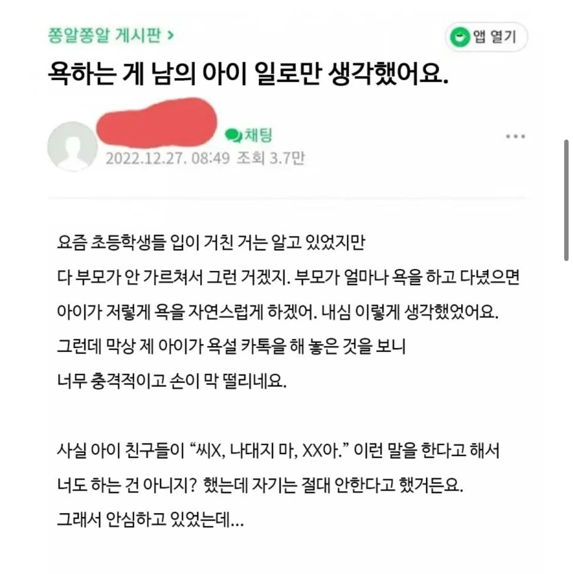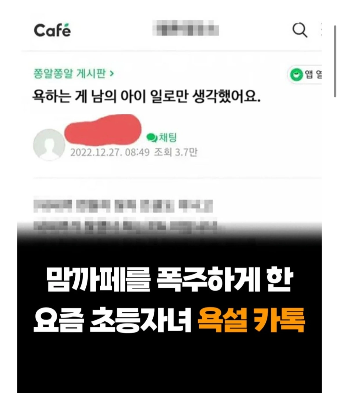 맘카페를 폭주하게 한 요즘 초등 자녀 욕설 카톡