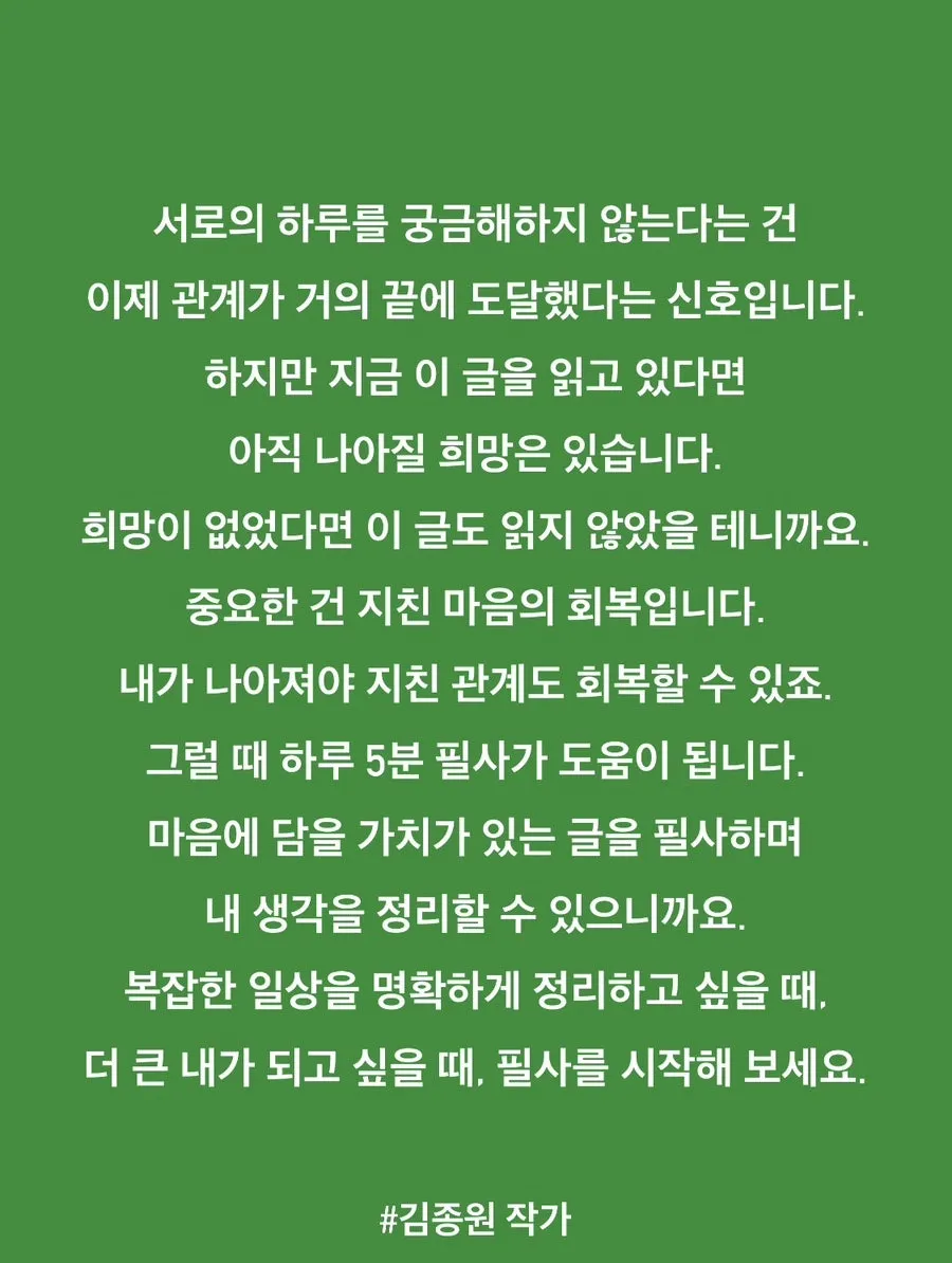 오늘의 인문학 김종원 작가님 글 낭송 안내입니다