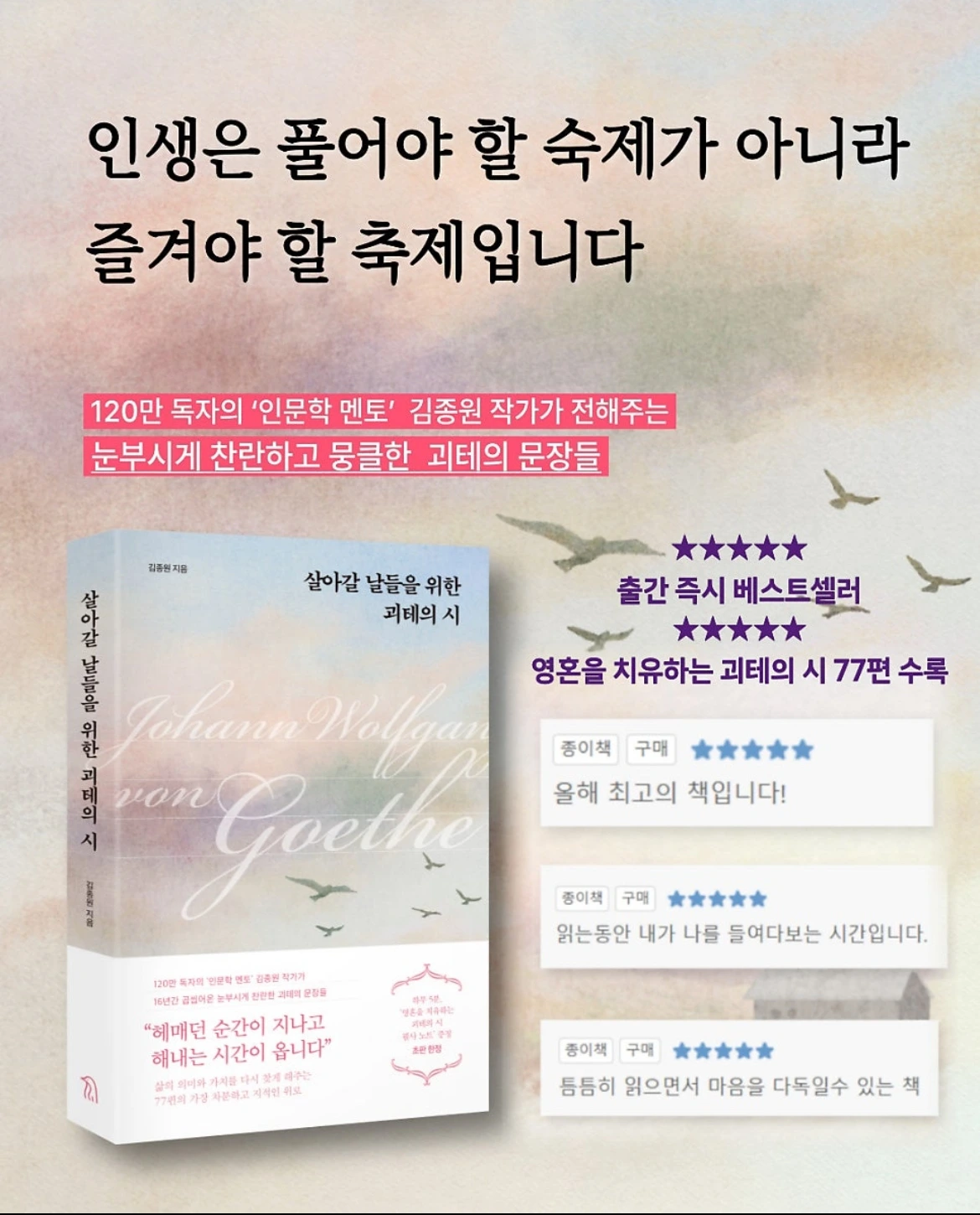 이 상품은 YES24에서 구성한 상품입니다.(낱개 반품 불가).[도서] 살아갈 날들을 위한 괴테의 시“헤매던 순간이 지나고, 해내는 시간이 옵니다”‘더 잘 살고 싶다’는 조바심과 불안으로 힘겨운
