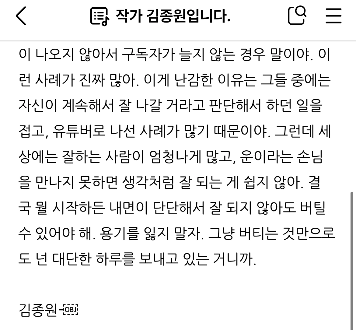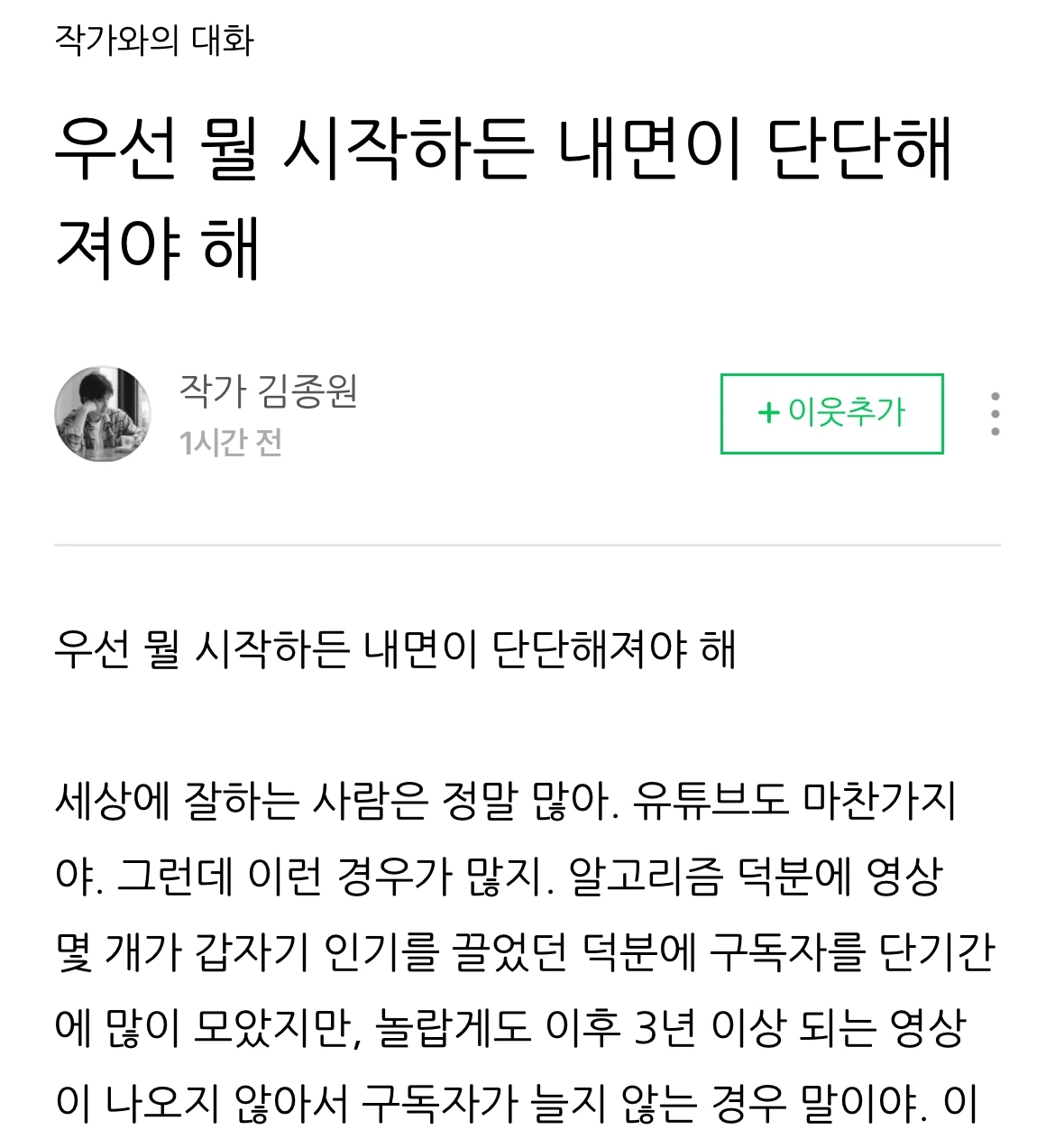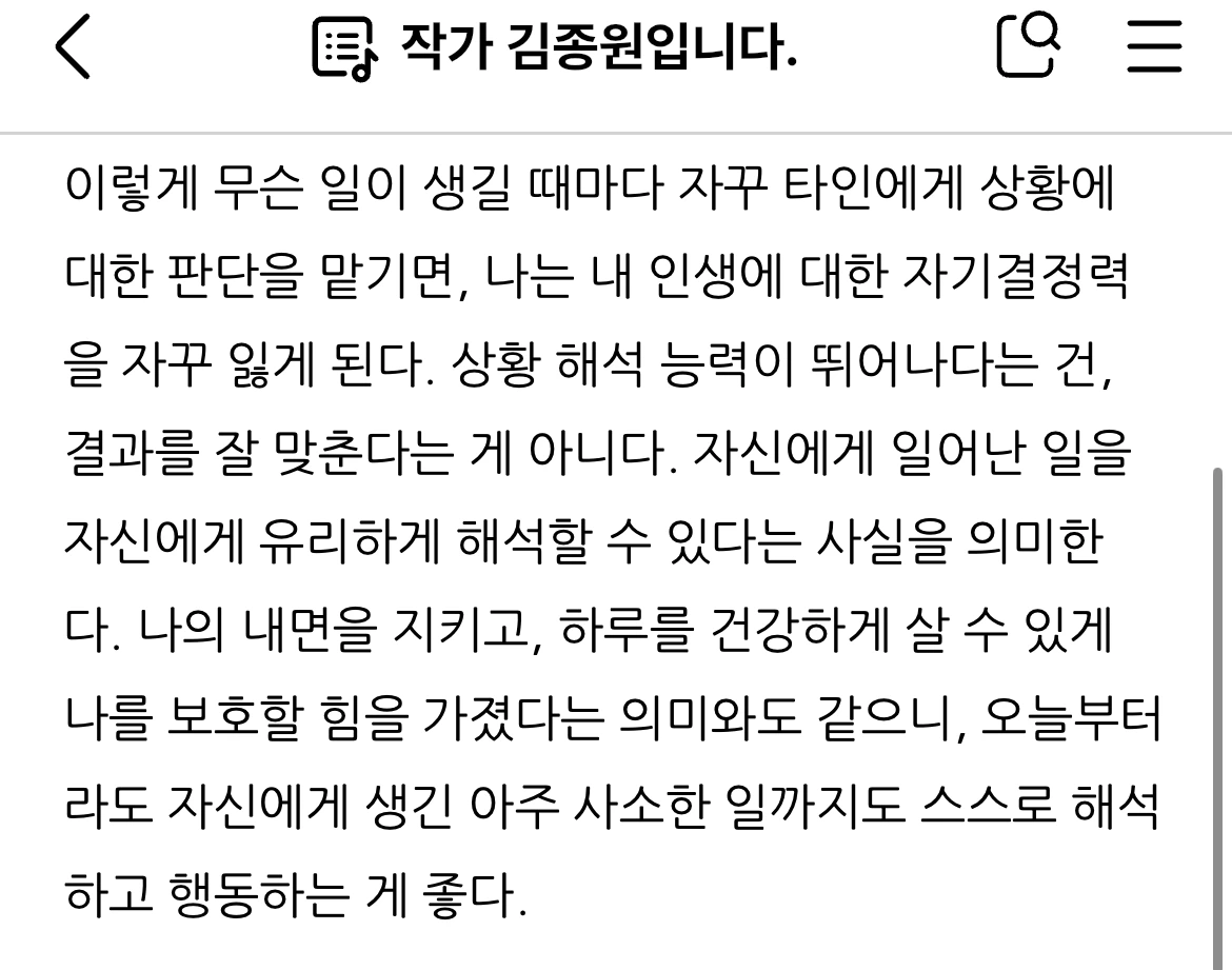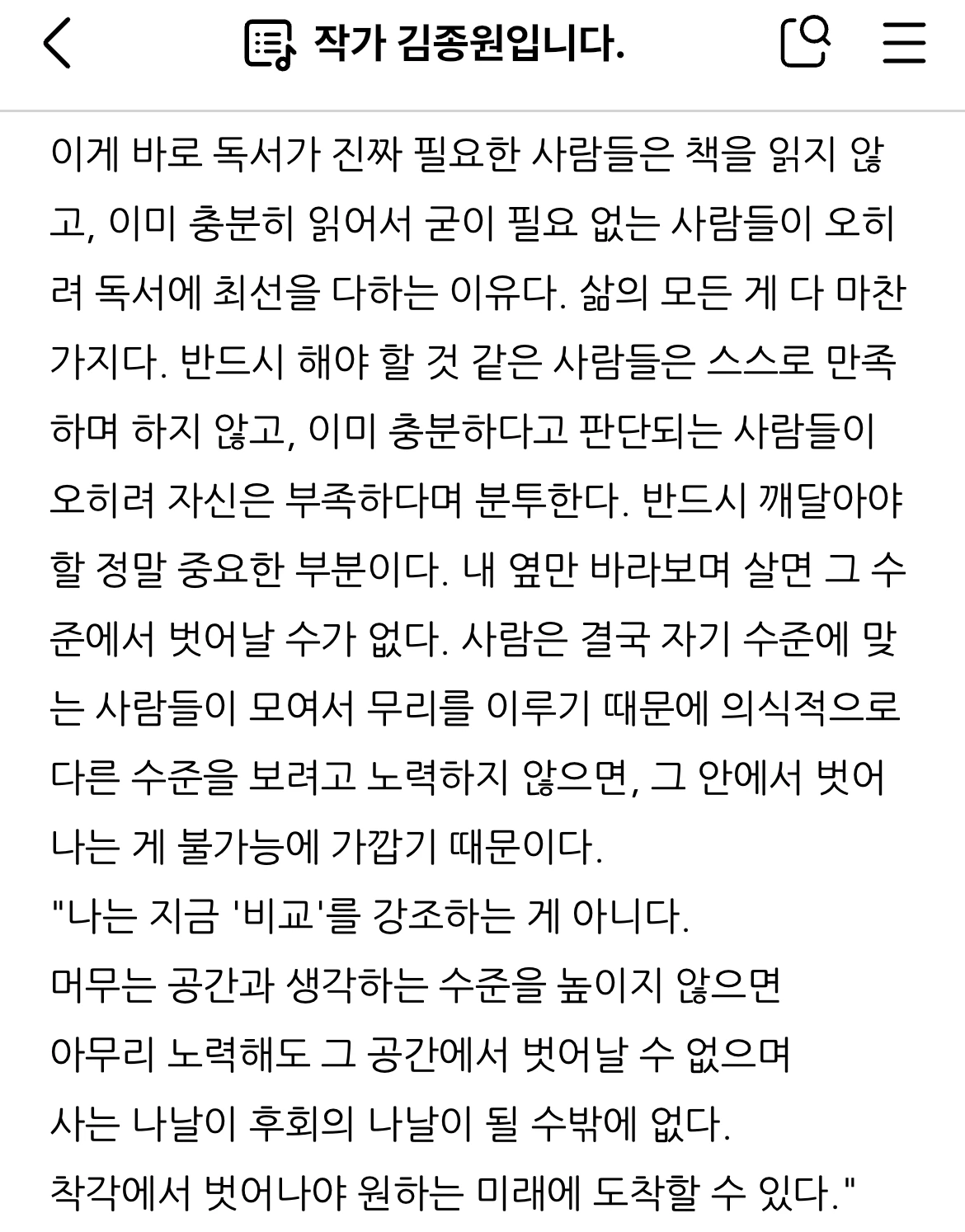 오늘의 인문학 김종원 작가님 저서 글 관련 낭송 안내입니다