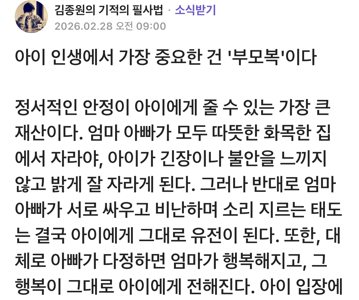 아이 인생에서 가장 중요한 건 부모복 이다