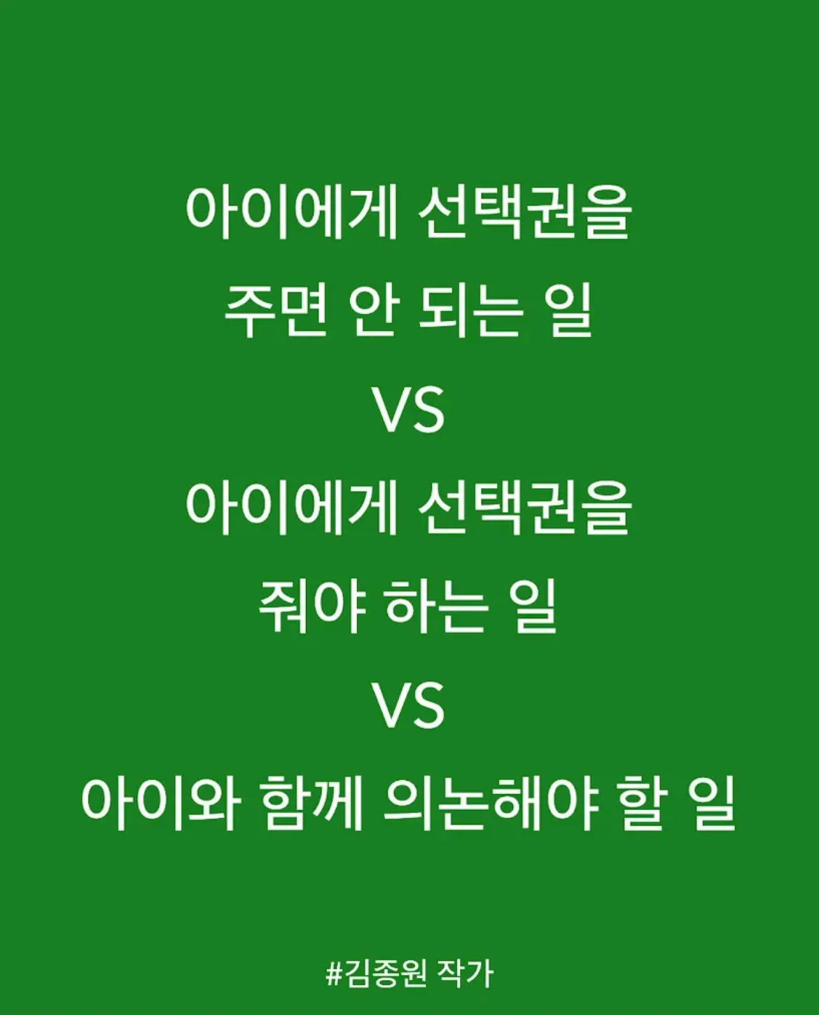 아이에게 선택권을 주면 안 되는 일 VS 아이에게 선택권을 줘야 하는 일 VS 아이와 함께 의논해야 할 일
