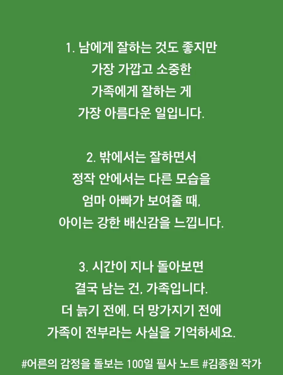 가족에게 잘하는 엄마 아빠가 가정도 잘 돌보고 아이도 크게 키웁니다