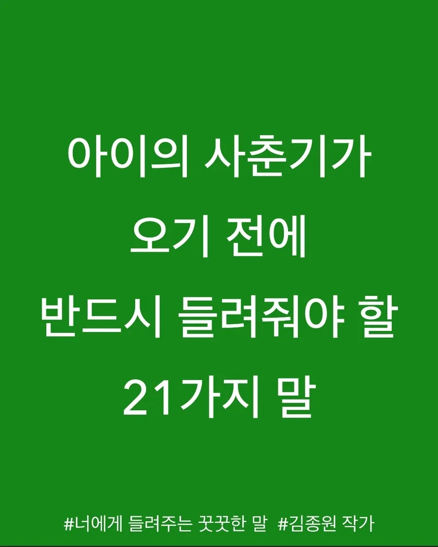 아이의 사춘기가 오기 전에 반드시 들려줘야 할 21가지 말