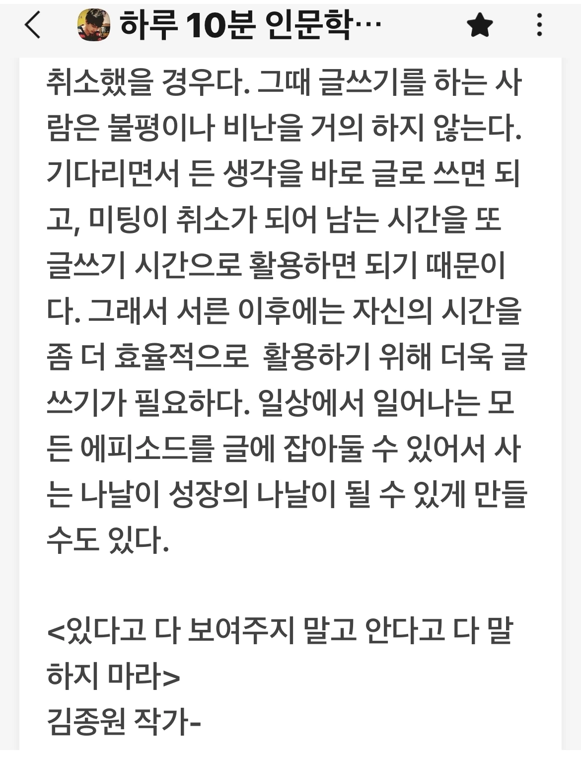 오늘의 인문학 김종원 작가님 글 낭송 안내입니다