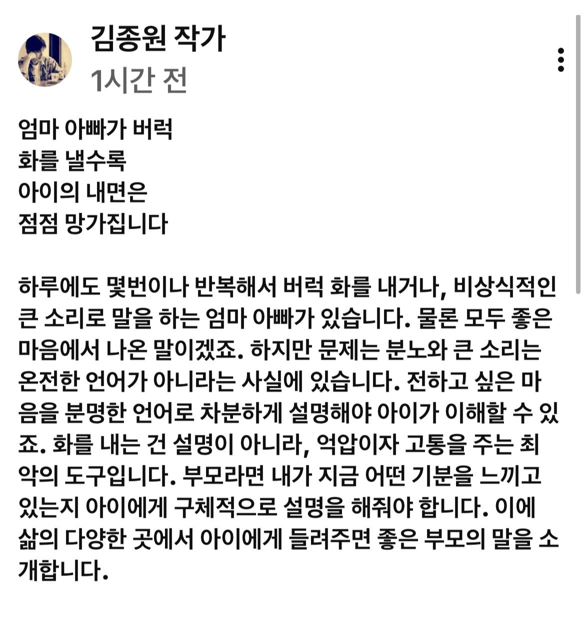 엄마 아빠가 버럭 화를 낼수록 아이의 내면은 점점 망가집니다