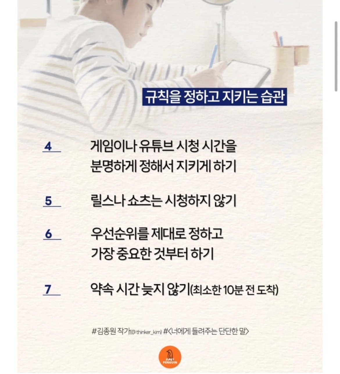 늦어도 14살 전에는 꼭 아이의 습관으로 만들어야 할 18가지