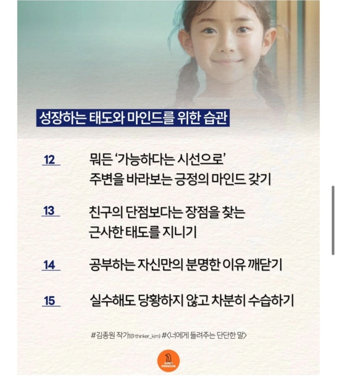 늦어도 14살 전에는 꼭 아이의 습관으로 만들어야 할 18가지